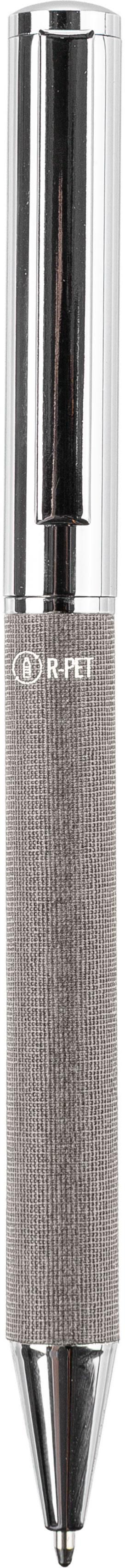 Drehkugelschreiber aus Messing und rPET mit Metallclip und Griffstück. Mit Drehmechanismus und rPET-Logo auf dem Gehäuse. Einzeln verpackt in einer braunen Pappschachtel. Blaue Tinte.