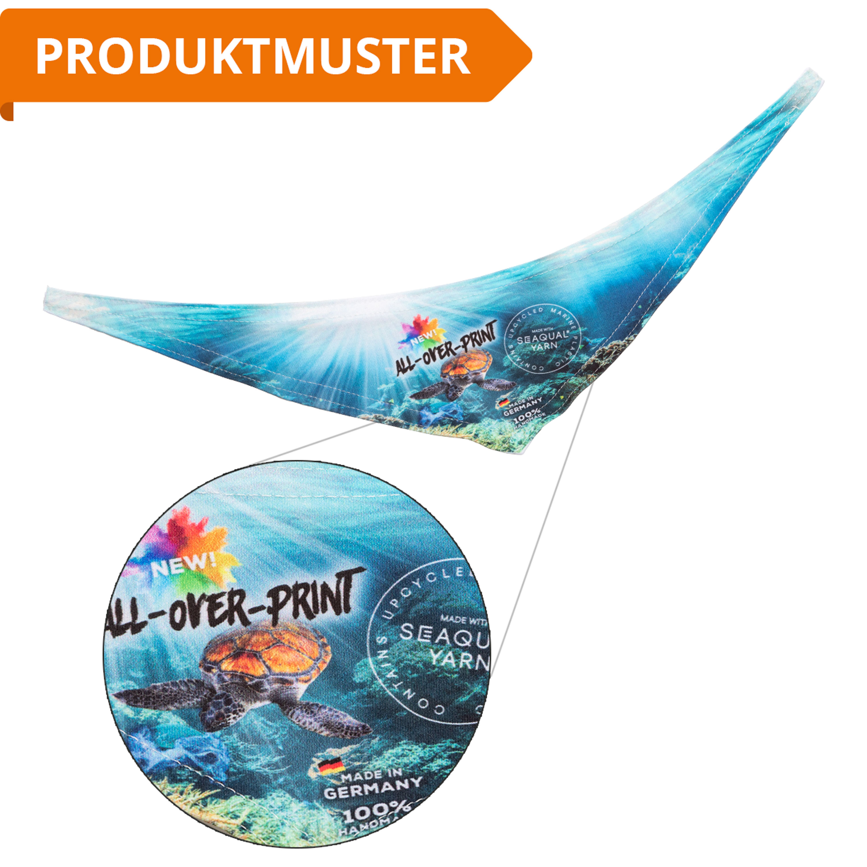 Beschreibung: Ein Dreiecktuch ist bei sitzenden Tieren, die einen T-Shirt-Aufdruck mit ihren Vorderbeinen verdecken würden, die richtige Wahl, um Werbung optimal in Szene zu setzen. Das Dreiecktuch All-Over-Print besteht aus recyceltem Plastik, u. a. Upcycled Marine Plastic aus den Weltmeeren. Hiermit lassen sich auffallende Accessoires basierend auf Arbeitskleidung, Saisons, Jahreszeiten, Events oder nahezu allen fotorealistischen Motiven erstellen. Erhältlich in verschiedenen Größen. Stylish für Ihre Kunden, gut für unsere Umwelt!