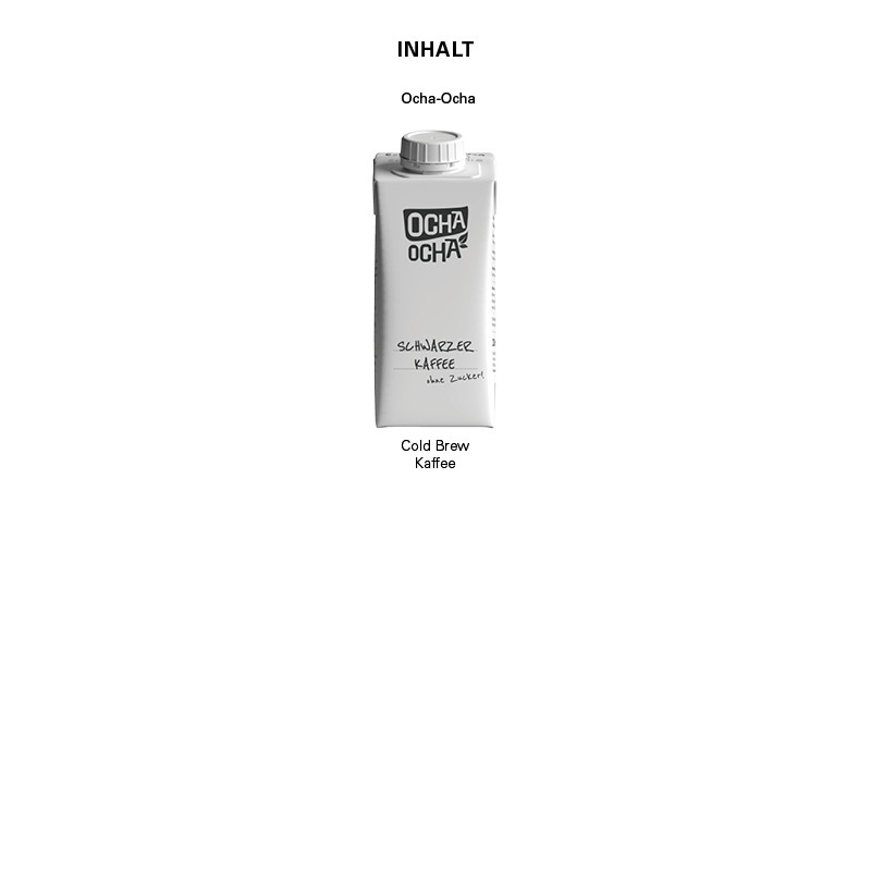 Ocha-Ocha® Cold Brew Kaffee aus 100 % Arabicabohnen im pfandfreien, recycelbaren Tetrapack in Werbeverpackung aus weißem Karton, individuell bedruckt. Inhalt: 1 Tetra Pak® mit Ocha-Ocha® Cold Brew Kaffee - Kaltgebrühter Kaffee aus 100 % Arabicabohnen, 0,2 l