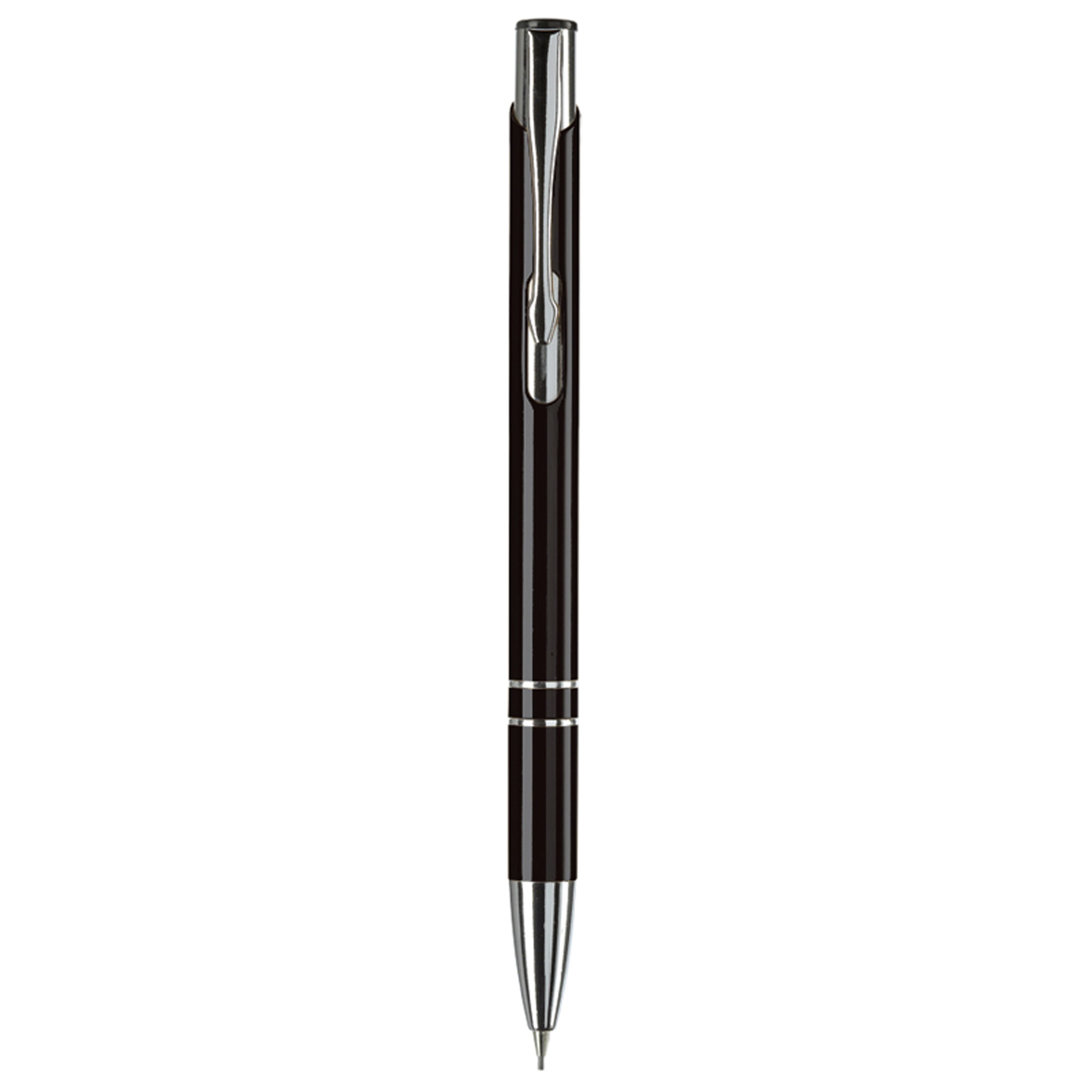 Eleganter Aluminium Druckbleistift (0,7mm), mit 2 Chromringen an der Griffzone.