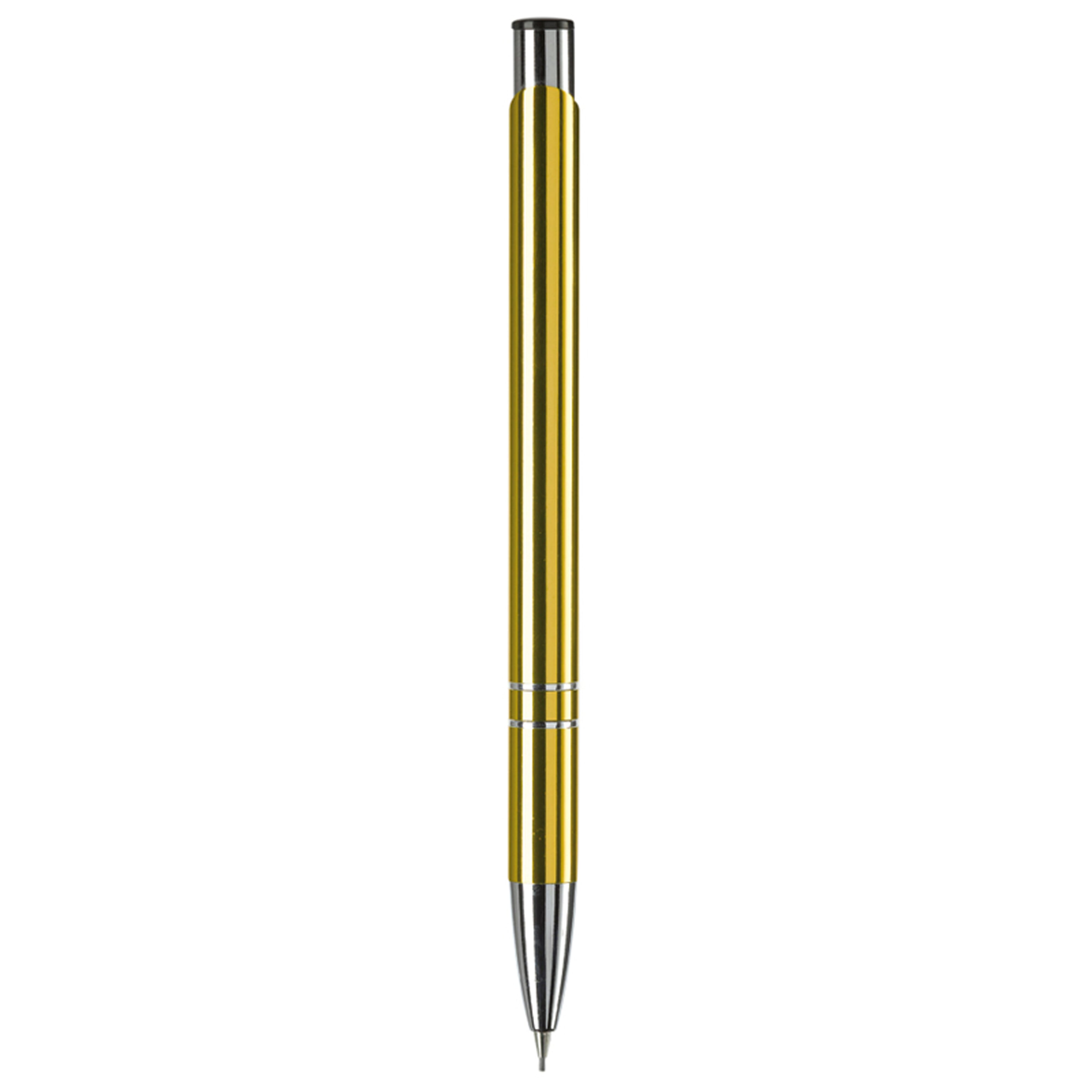 Eleganter Aluminium Druckbleistift (0,7mm), mit 2 Chromringen an der Griffzone.
