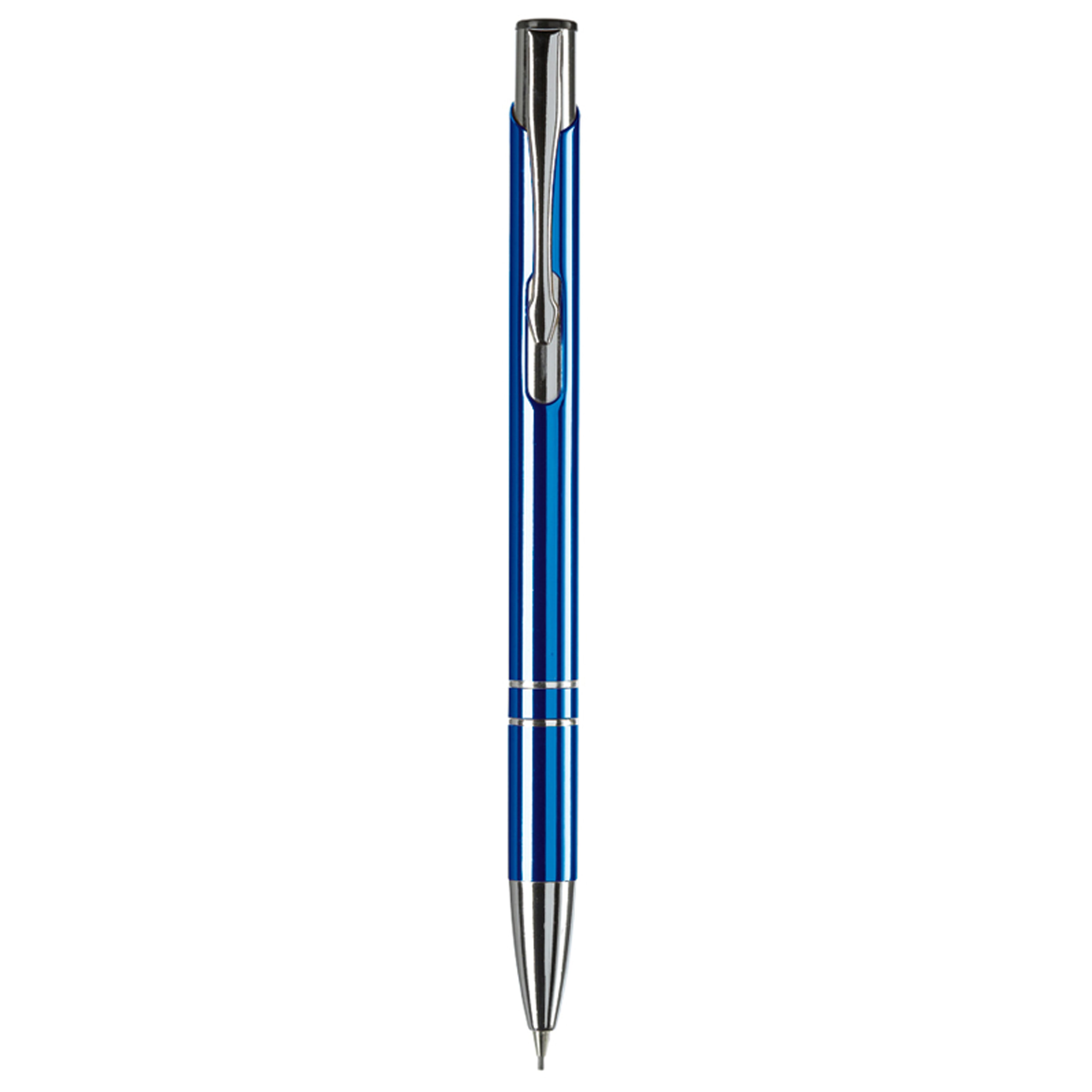 Eleganter Aluminium Druckbleistift (0,7mm), mit 2 Chromringen an der Griffzone.