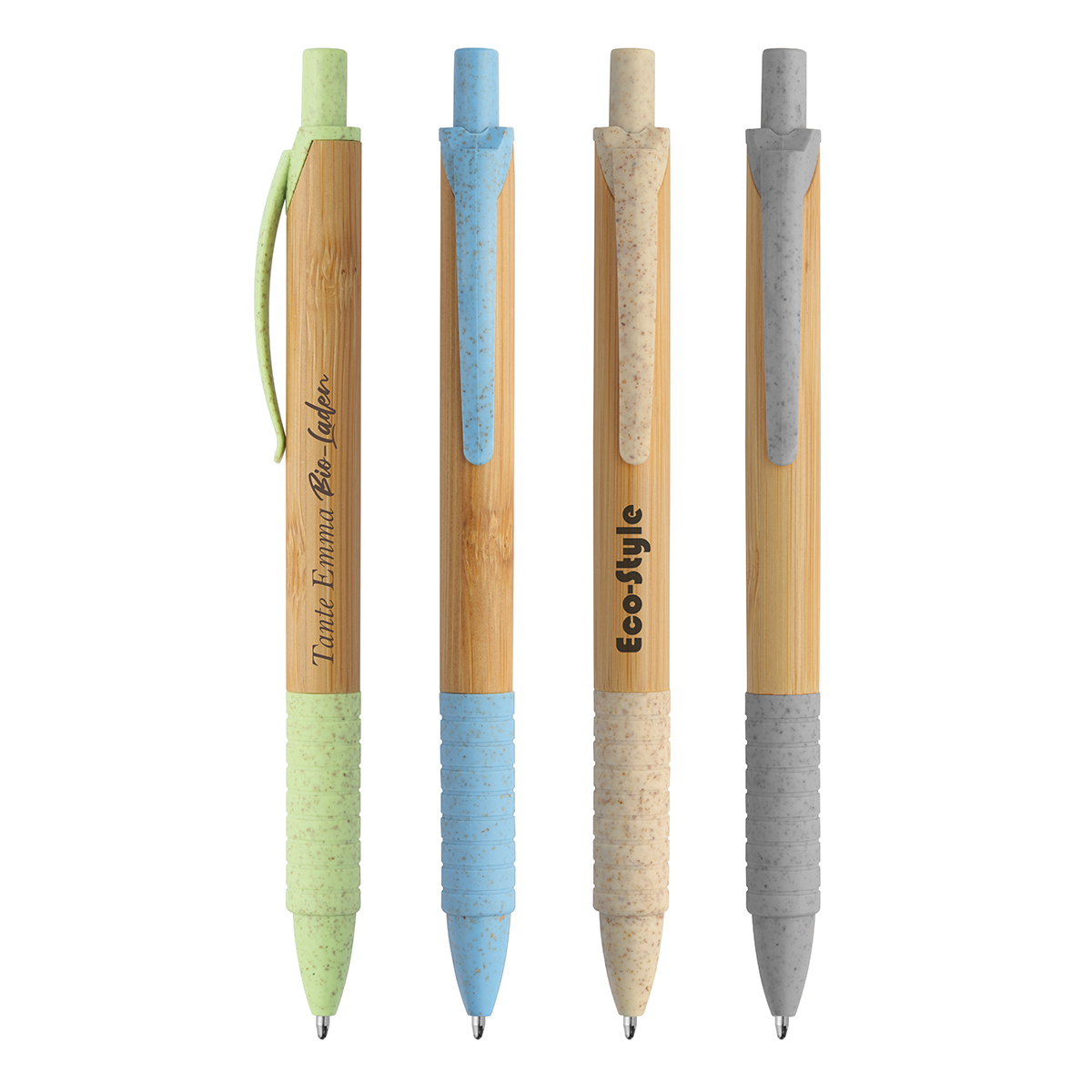 Druckkugelschreiber Bambus aus nachwachsenden Rohstoffen, mit Softgripzone Mine X-20, blau schreibend