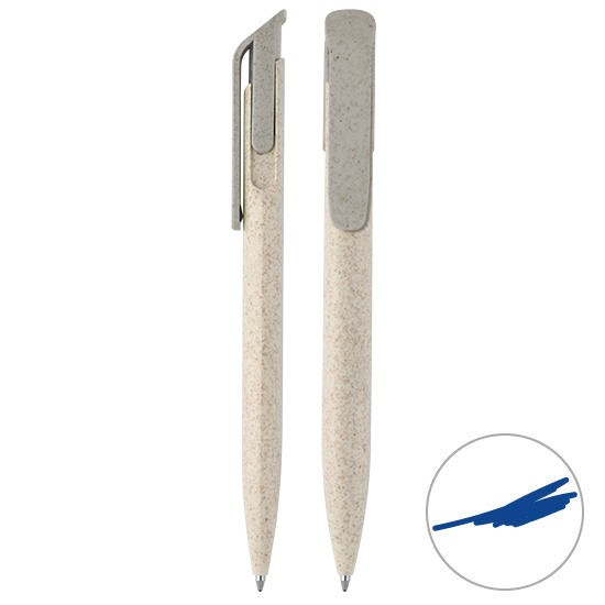 Druckkugelschreiber Bio aus nachwachsendem Rohstoff, Großraummine, blau schreibend. Biobasierter Kunststoff auf Weizenstrohbasis, Anteil ca. 40 %