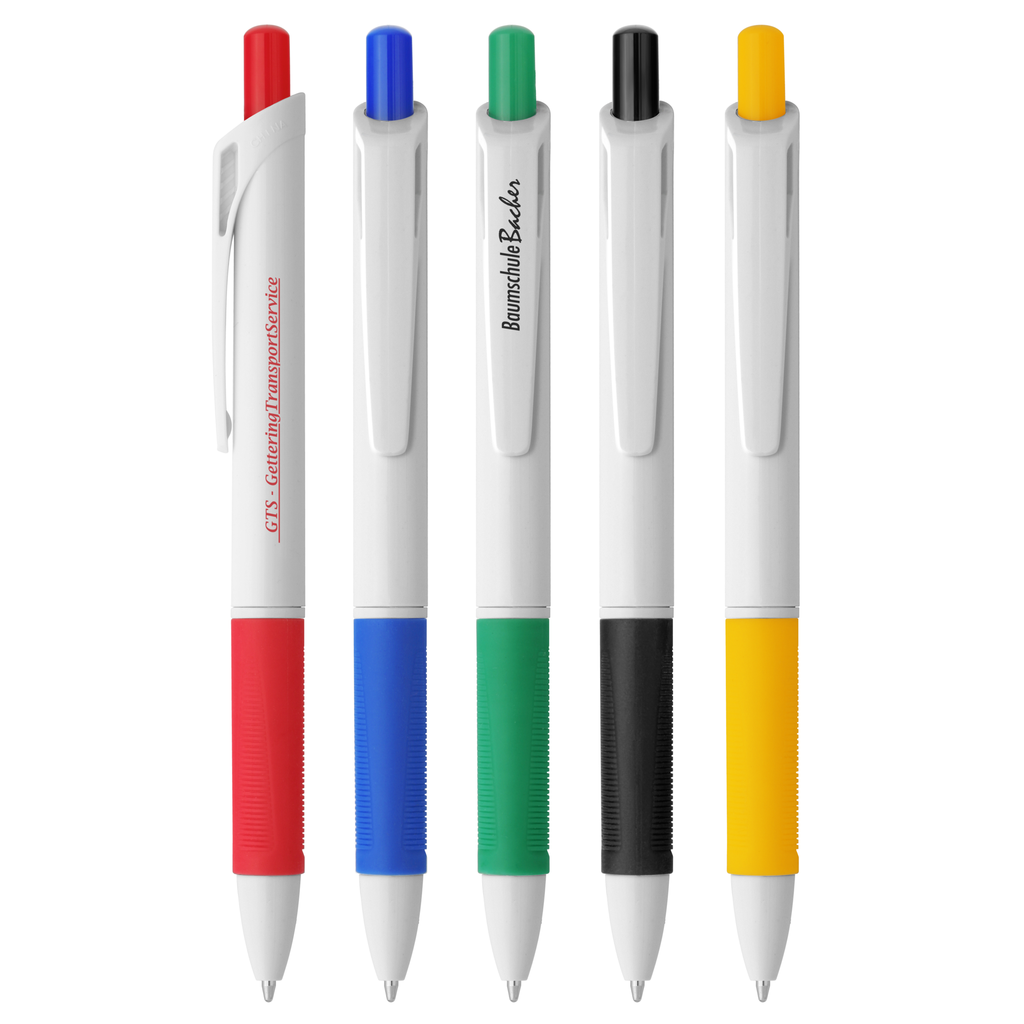 Druckkugelschreiber "Iota" mit Softgripzone, Mine X-20, blau schreibend