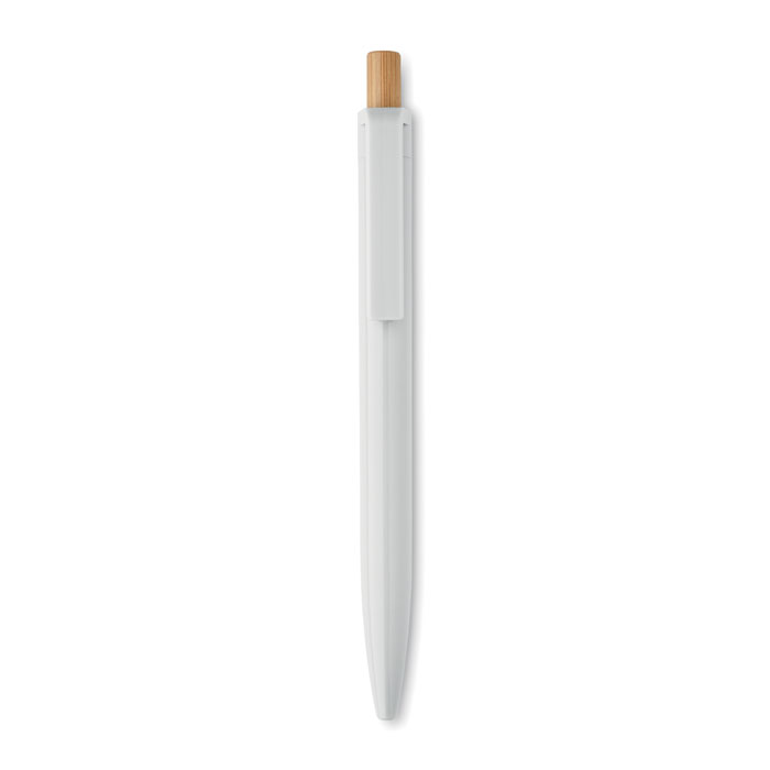 Druckkugelschreiber aus recyceltem ABS. Drücker aus Bambus. Blaue Tinte.