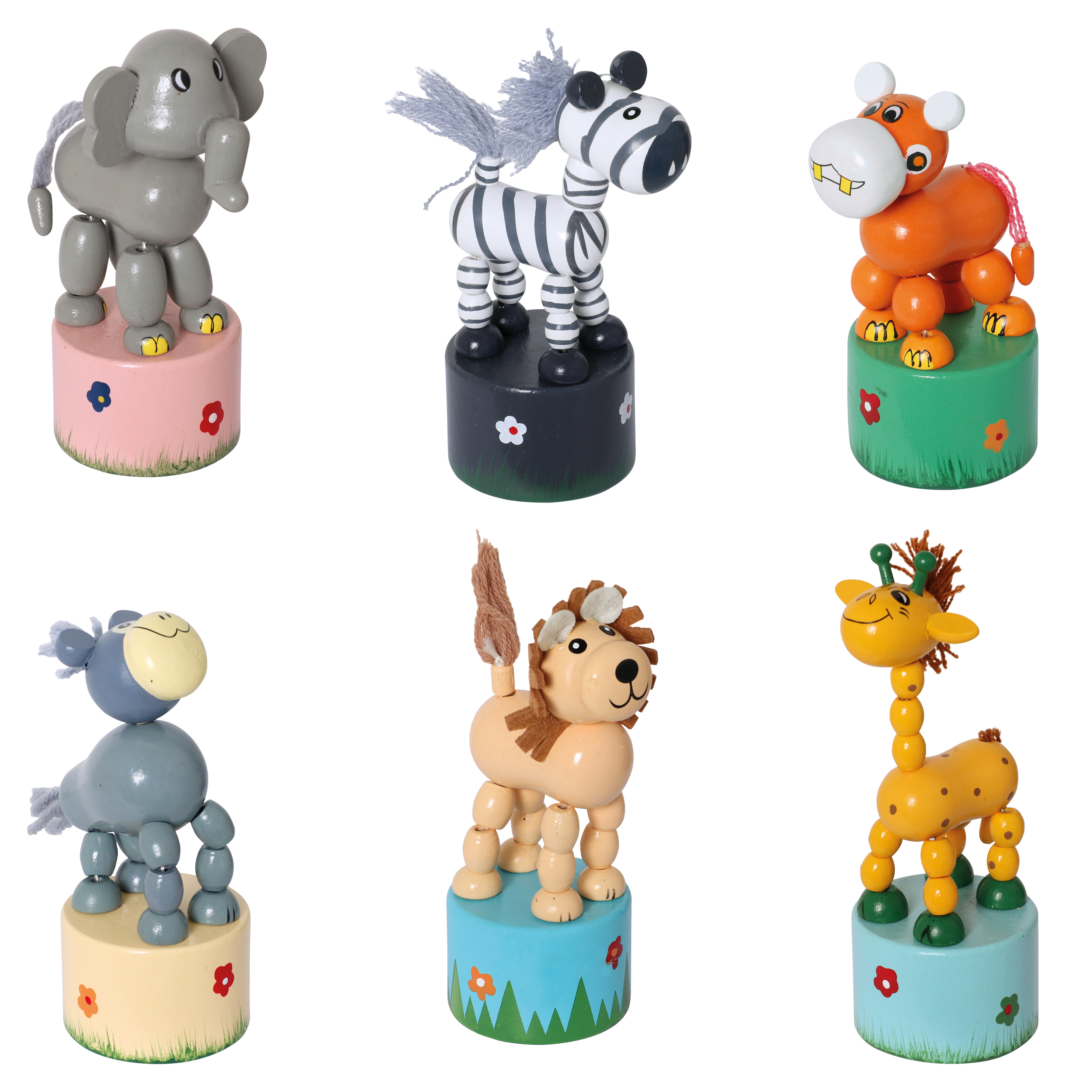 Jetzt wird gezappelt! Durch Drücken des Bodens werden diese fröhlichen Afrika-Tiere lebendig. Immer neue, lustige Bewegungen entstehen durch unterschiedlich starkes Drücken und Verlagerung des Druckpunktes. Ein herrlicher Wackelspaß zum Spielen, Sammeln und Verschenken! 6 Motive im Set: Zebra, Löwe, Affe, Giraffe, Flußpferd und Elefant. kurzweiliger Spielspaß ab 3 Jahren.