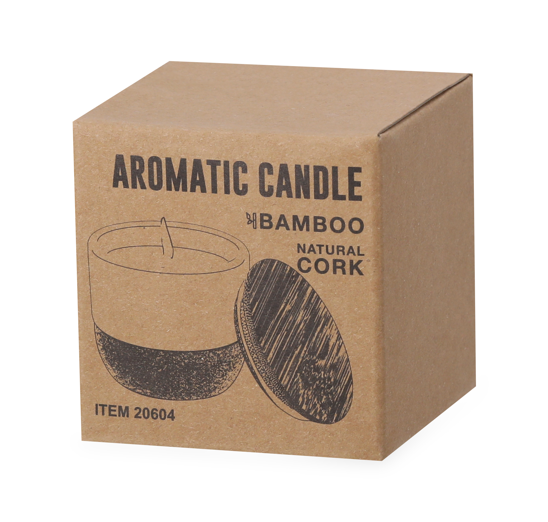 Duftkerze aus Leinen. Wird in einem originalen weißen Keramikgefäß mit Naturkorkboden und Bambusdeckel geliefert. Präsentiert in einer individuellen Kraft-Designbox.