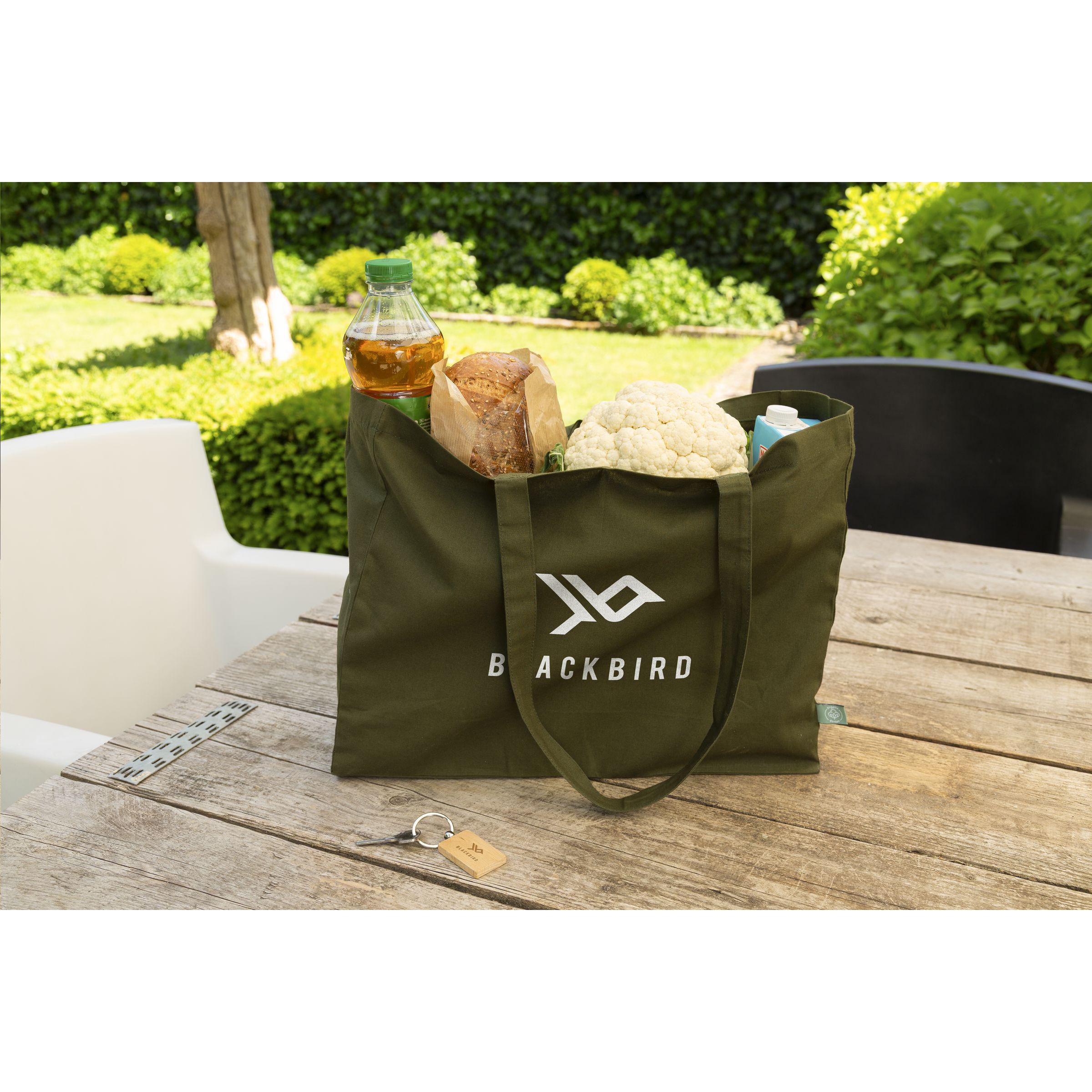Robuste Einkaufstasche aus 100% Baumwolle in Bio-Qualität (180 g/m²). Mit langen Griffen. Ideal für die häufige Wiederverwendung. Fassungsvermögen ca. 19 Liter.