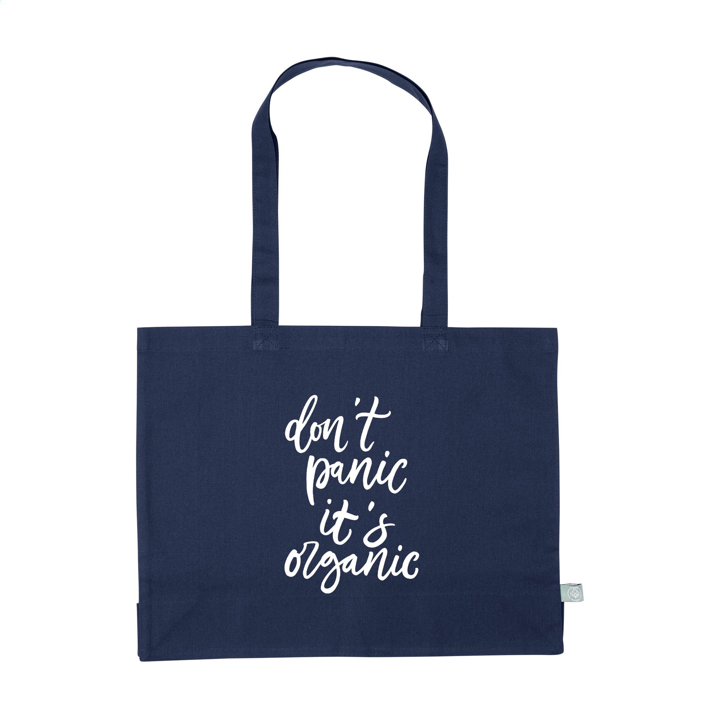 Robuste Einkaufstasche aus 100% Baumwolle in Bio-Qualität (180 g/m²). Mit langen Griffen. Ideal für die häufige Wiederverwendung. Fassungsvermögen ca. 19 Liter.