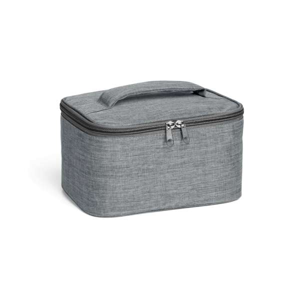 Kulturbeutel aus 300D HD mit gepolstertem Griff und Doppelreißverschluss. Verfügt über einen gefütterten Innenbereich und Innentasche mit Reißverschluss. 200 x 115 x 140 mm
