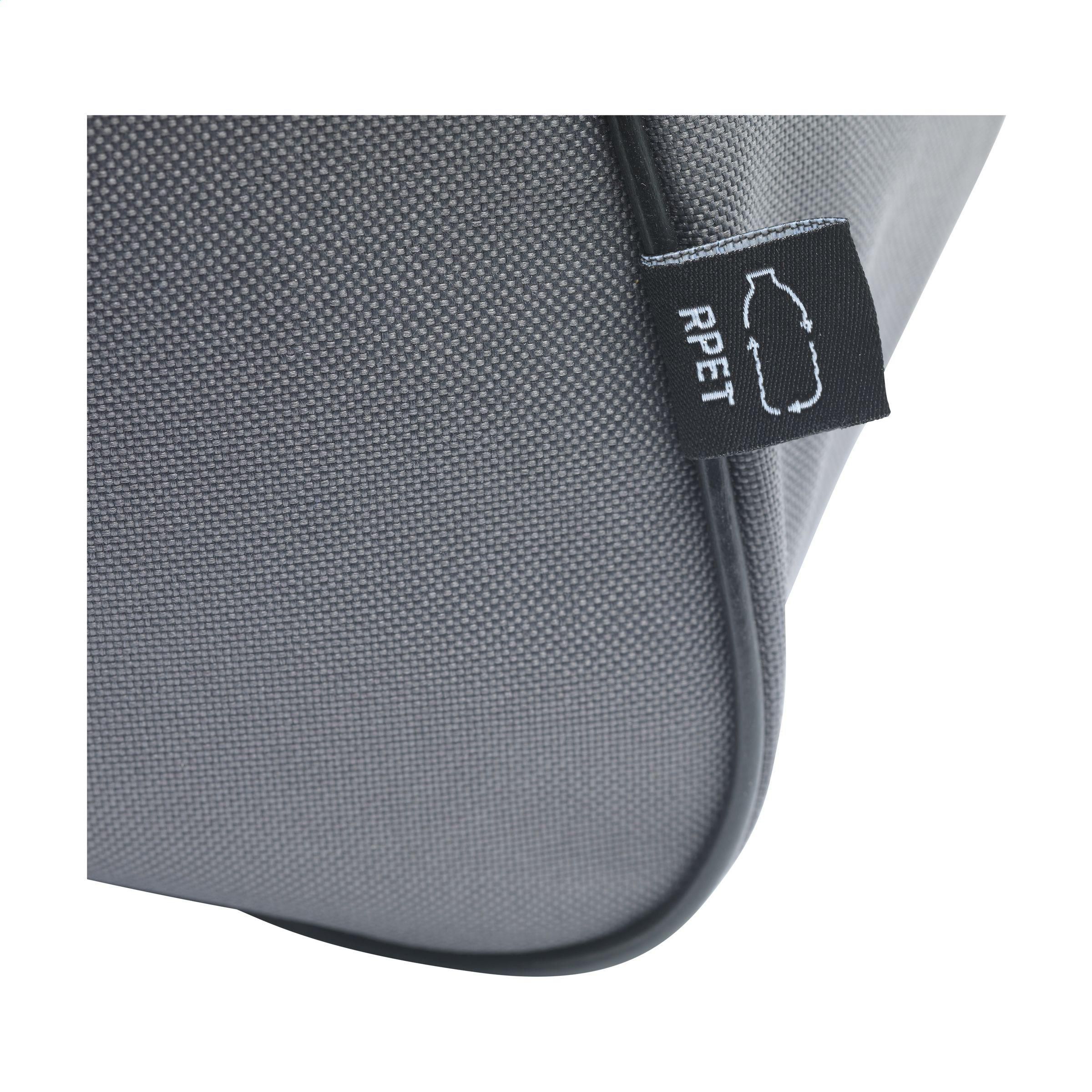 Geräumige Sport-/Reisetasche aus robustem 600D RPET-Polyester. Mit viel Stauraum, einem Reißverschlussfach auf der Vorderseite, 2 Griffen und verstellbaren Schulterriemen. GRS-zertifiziert. Recyceltes Material insgesamt: 98%. Fassungsvermögen ca. 35 Liter.