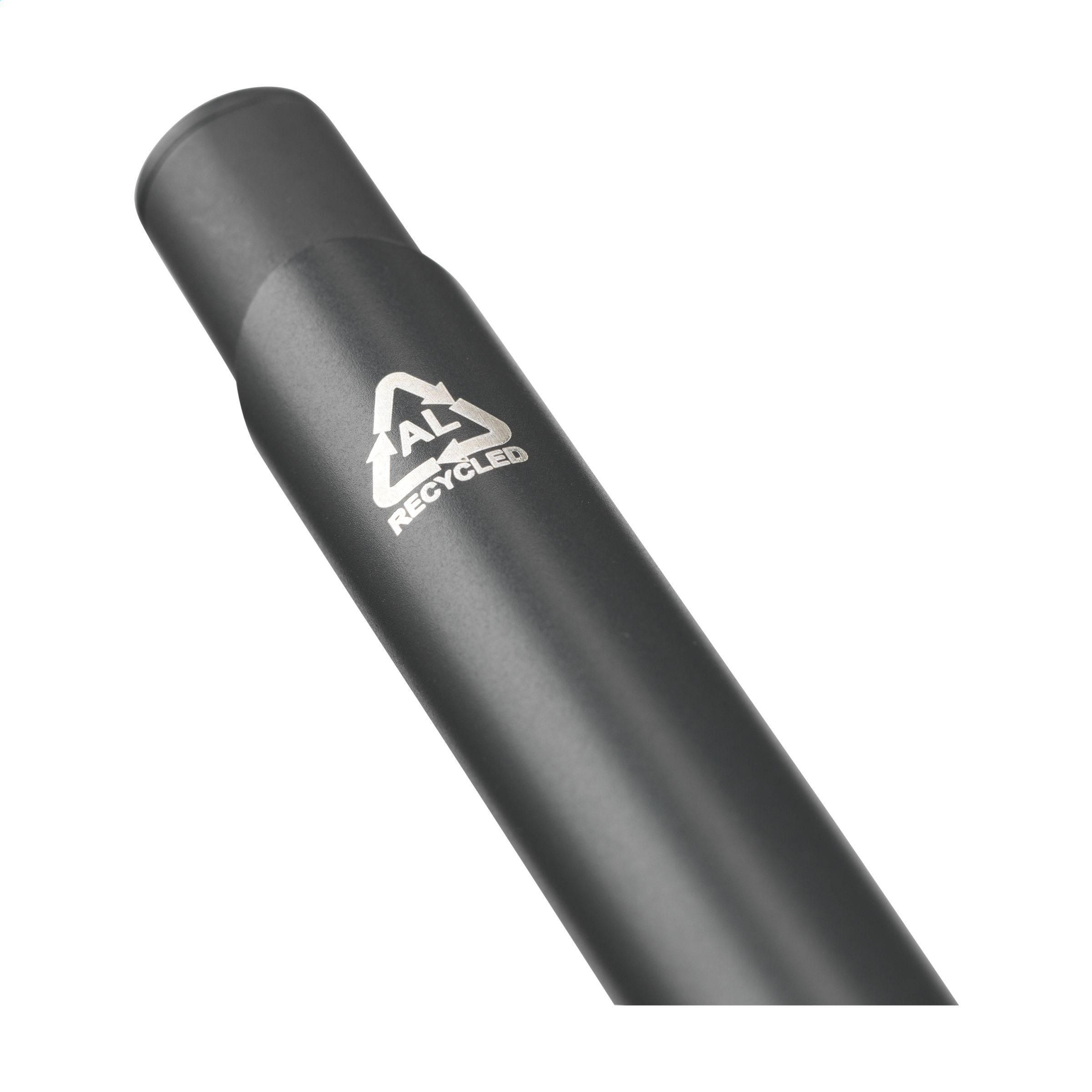 Beschreibung: Blau schreibender Kugelschreiber mit einem Gehäuse aus 100% recyceltem Aluminium. Mit Metallclip, Kunststoffspitze und Druckknopf. RCS-zertifiziert.Durch die Verwendung von recyceltem Aluminium werden bei der Herstellung dieses Produkts weniger neue Rohstoffe verwendet. Das bedeutet weniger Energieverbrauch und weniger Wasserverbrauch.