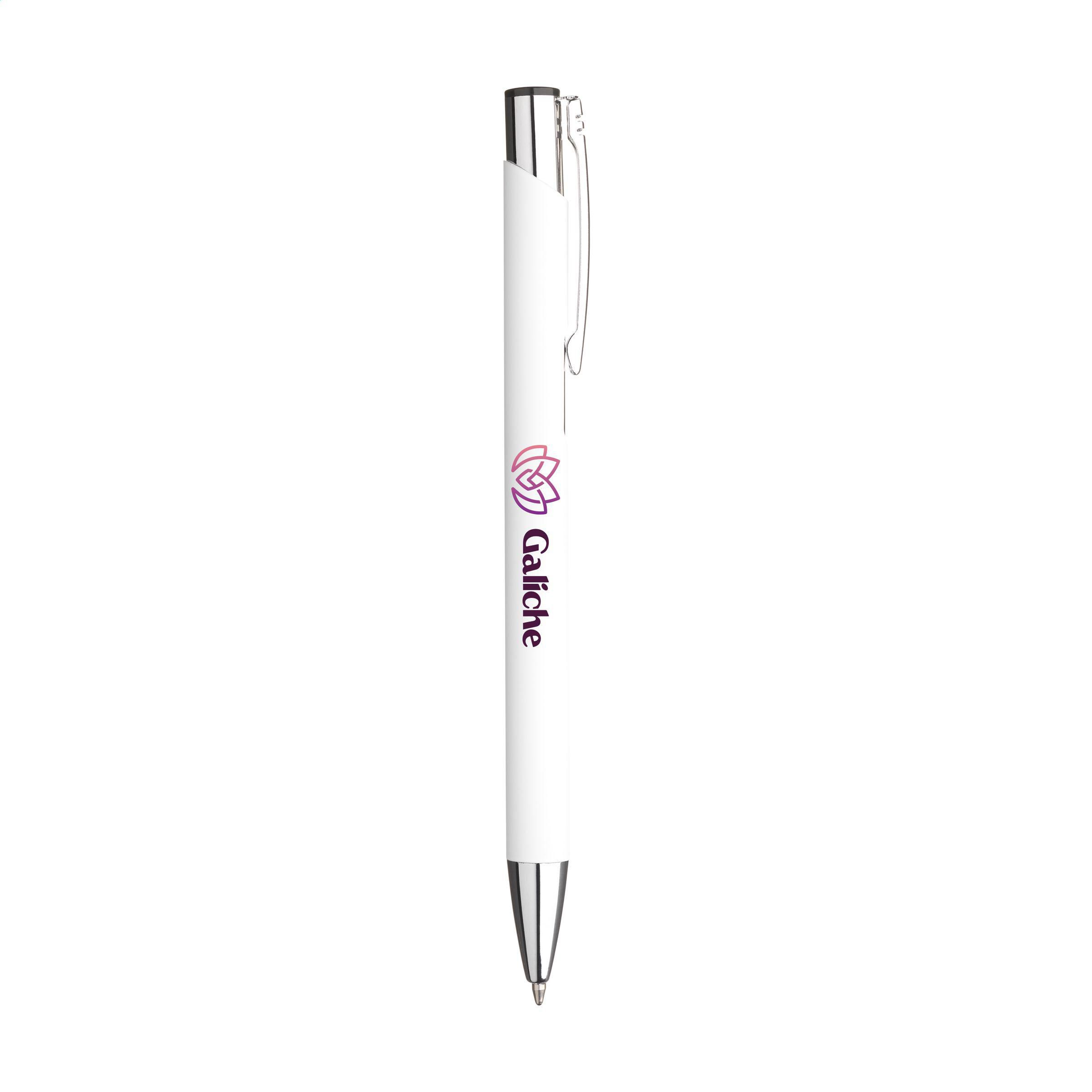 Beschreibung: Blauschreibender Aluminium-Kugelschreiber mit Metallclip. Der Halter ist mit einer schönen gummierten Oberfläche versehen. Durch den einteiligen Halter bietet dieser Stift Platz für einen großen Aufdruck.