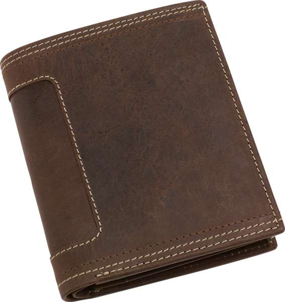 Echtleder-Geldbörse WILD STYLE II - im Hochformat: innen 6 Einsteckfächer für Geldkarten, 2 Geldscheinfächer, 1 Münzfach mit Druckknopfverschluss für Kleingeld, 2 Netzfächer, 4 zusätzliche Fächer, außen dekorative Ziernähte, in Box