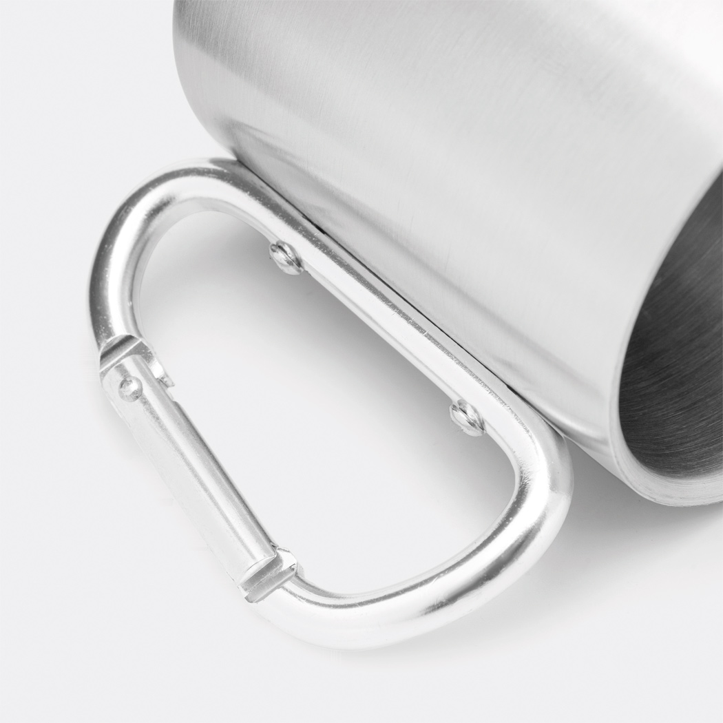 Edelstahl Becher HIKING DAY, doppelwandig: Füllmenge ca. 220 ml, mit farblich abgesetztem Karabinerhaken (der Karabiner ist NICHT als Sicherung beim Klettern geeignet)