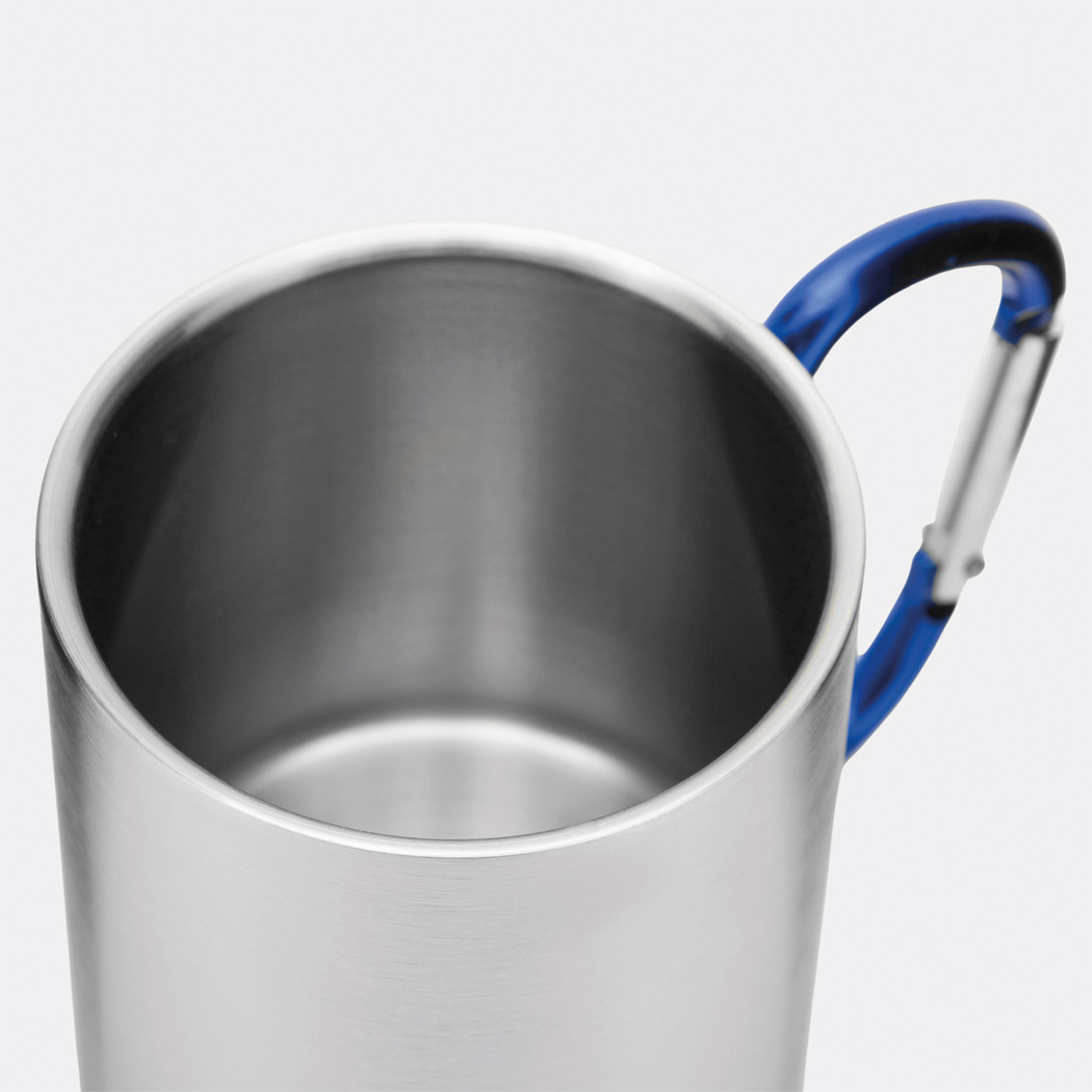 Edelstahl Becher HIKING DAY, doppelwandig: Füllmenge ca. 220 ml, mit farblich abgesetztem Karabinerhaken (der Karabiner ist NICHT als Sicherung beim Klettern geeignet)