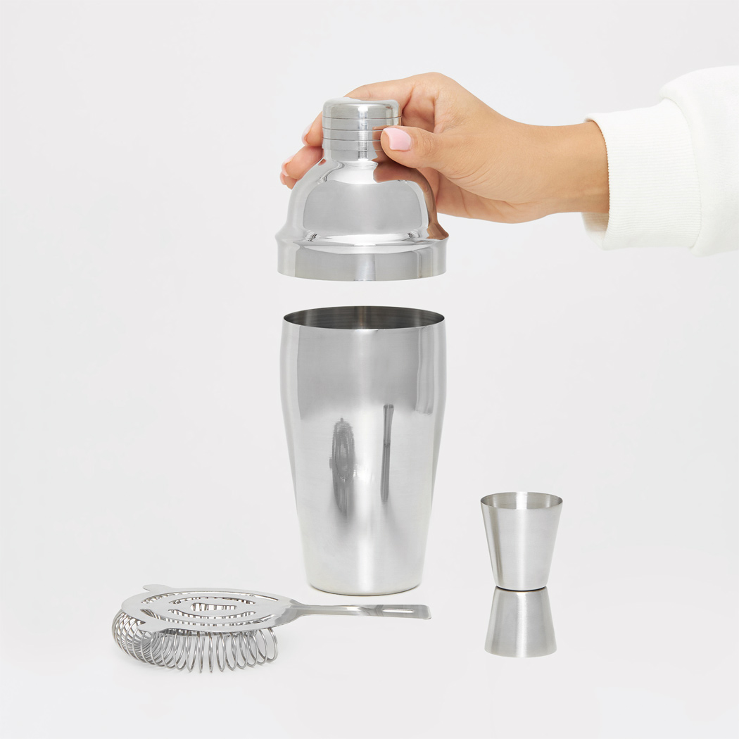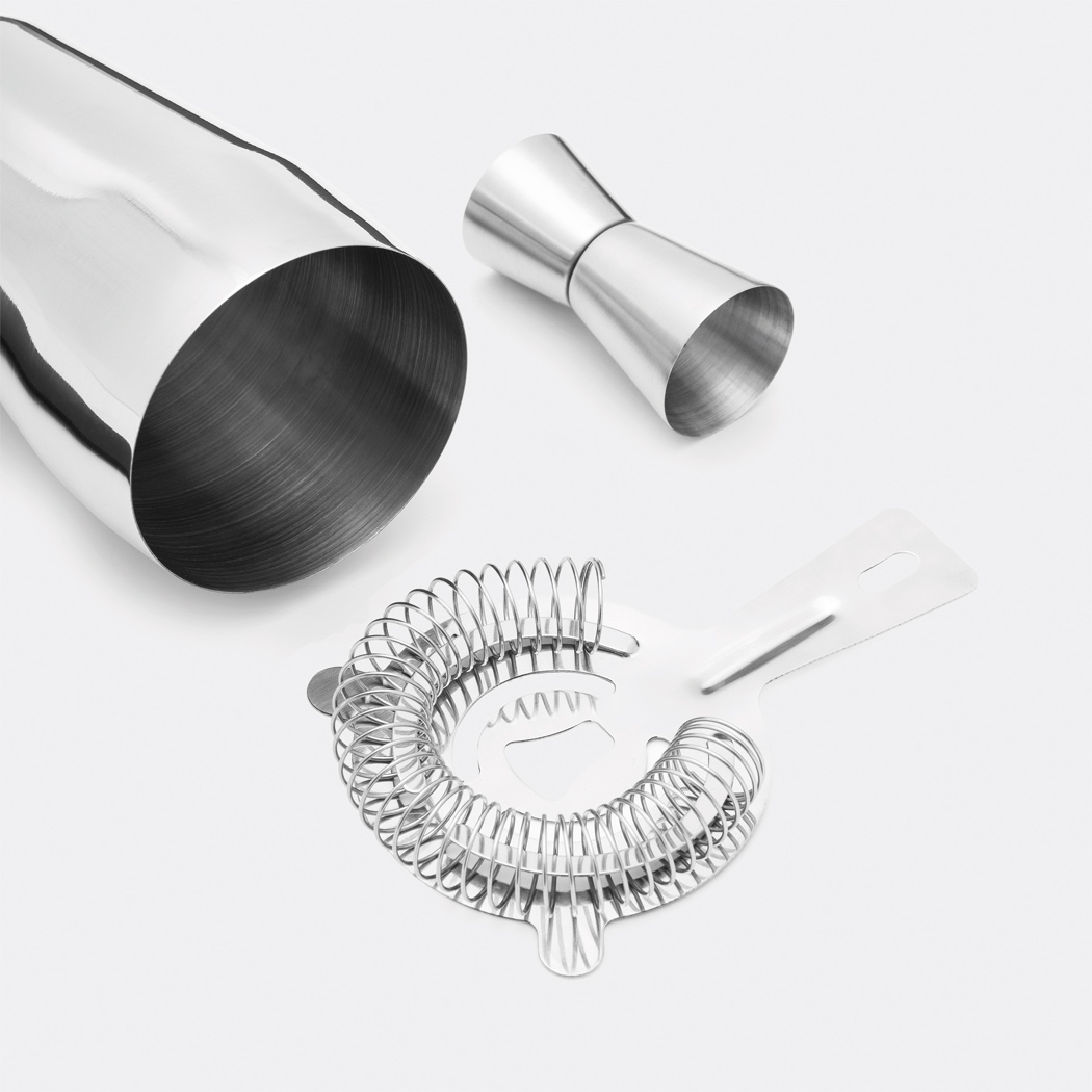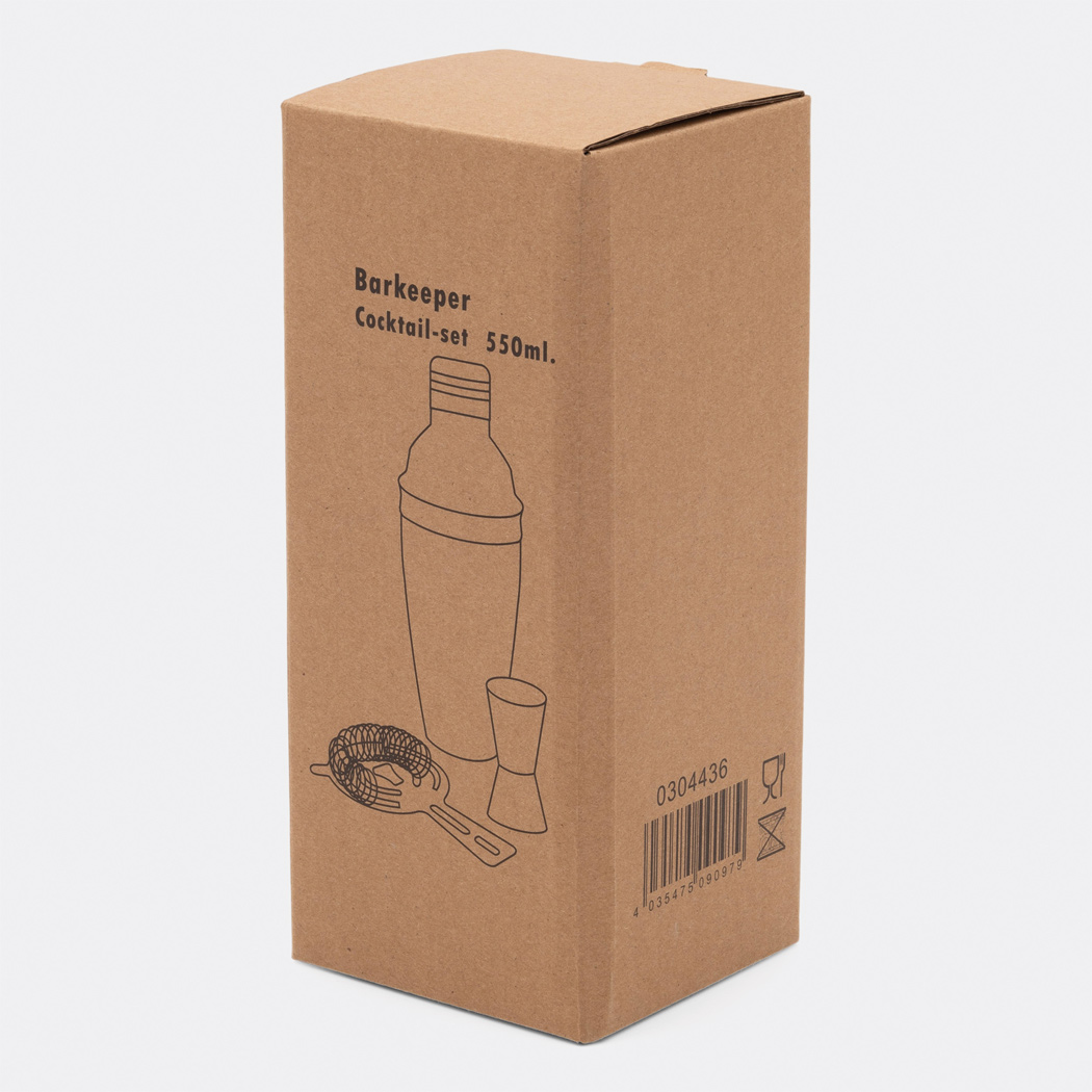 Edelstahl-Cocktailshaker-Set BARKEEPER, 3-teilig: bestehend aus Shaker mit Sieb und Deckel, Barsieb und Doppelmessbecher, Füllmenge ca. 550 ml, in Box