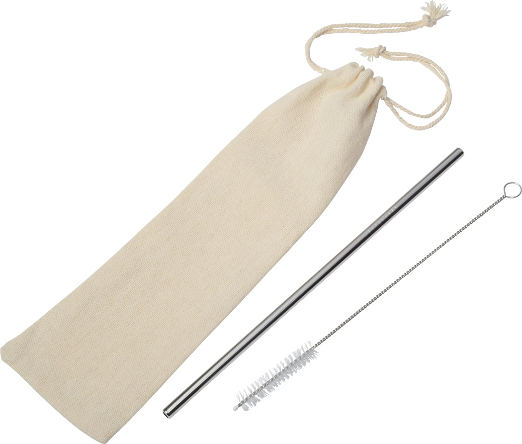 Edelstahl-Strohhalm DRINK ELEGANT: inkl. Bürste für eine bequeme Reinigung, im umweltfreundlichen Baumwollbeutel