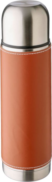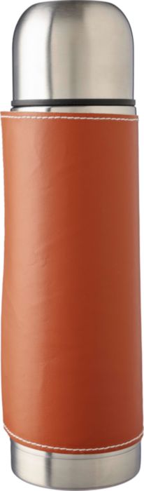 Edelstahlflasche (400 ml) mit PU-Außenhülle. Hülle kann entfernt werden. Hergestellt aus rostfreiem Stahl 304. Einzeln verpackt in einer braunen Pappschachtel.