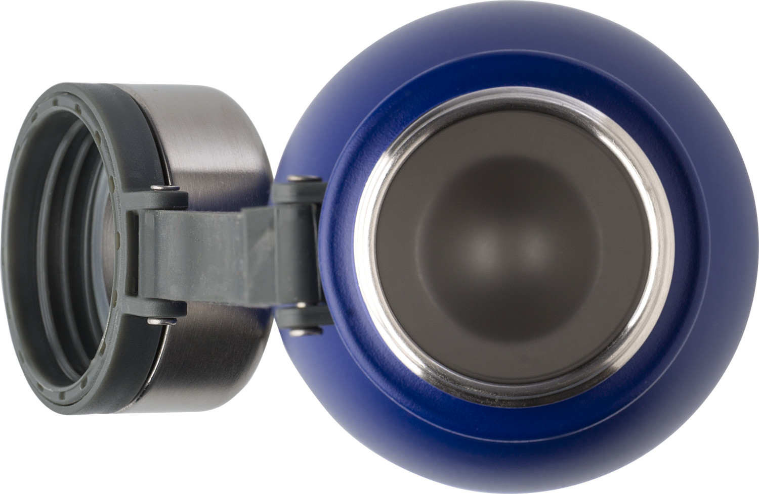 Doppelwandige Flasche aus Edelstahl (600 ml). Silikonband hält die Kappe an der Flasche fest. Verpackt in einer Geschenkbox.