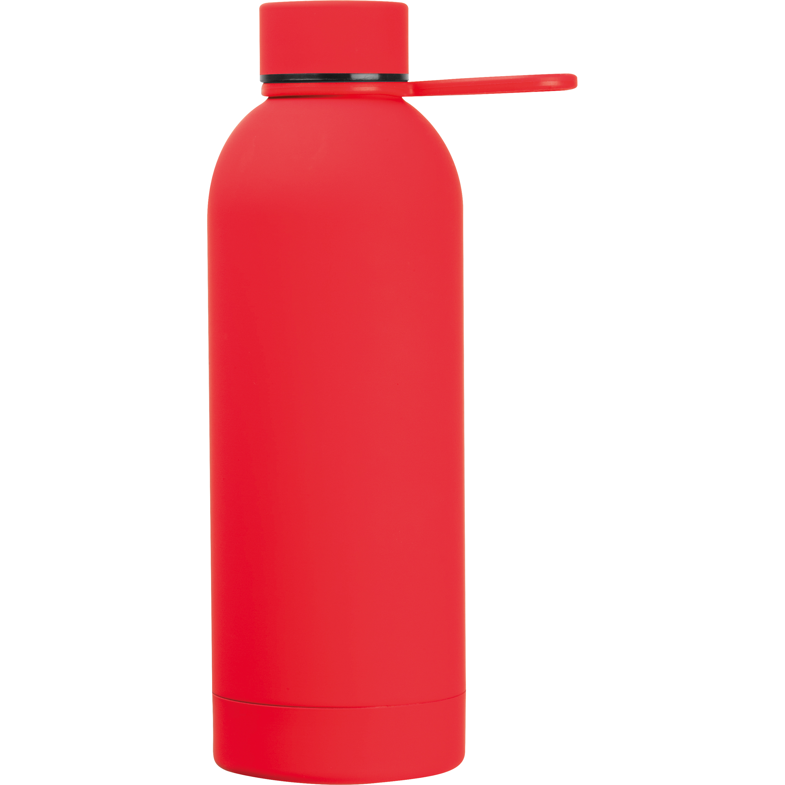 Robuste einwandige Trinkflasche (Fassungsvolumen 750ml) aus Edelstahl mit rubberfinish Oberfläche. Die rutschfeste, gummierte Oberfläche sorgt für optimalen Halt, während der Loop das Tragen oder Befestigen erleichtert. Wir gravieren Ihr Logo mittig auf der Flasche