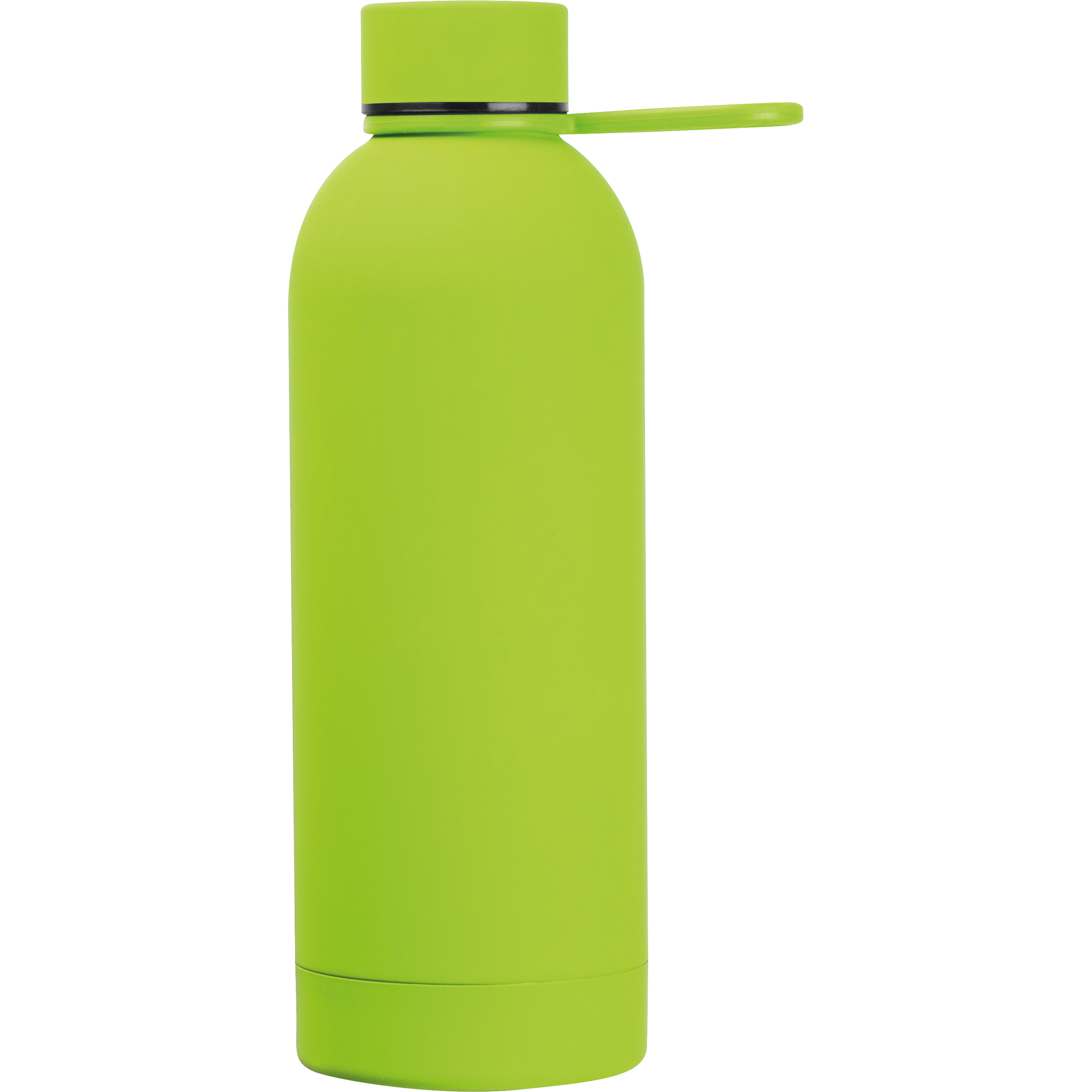 Robuste einwandige Trinkflasche (Fassungsvolumen 750ml) aus Edelstahl mit rubberfinish Oberfläche. Die rutschfeste, gummierte Oberfläche sorgt für optimalen Halt, während der Loop das Tragen oder Befestigen erleichtert. Wir gravieren Ihr Logo mittig auf der Flasche