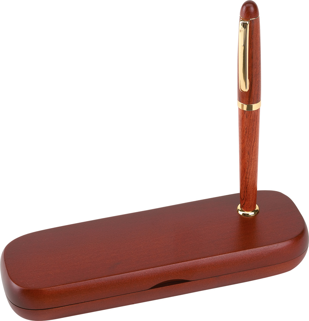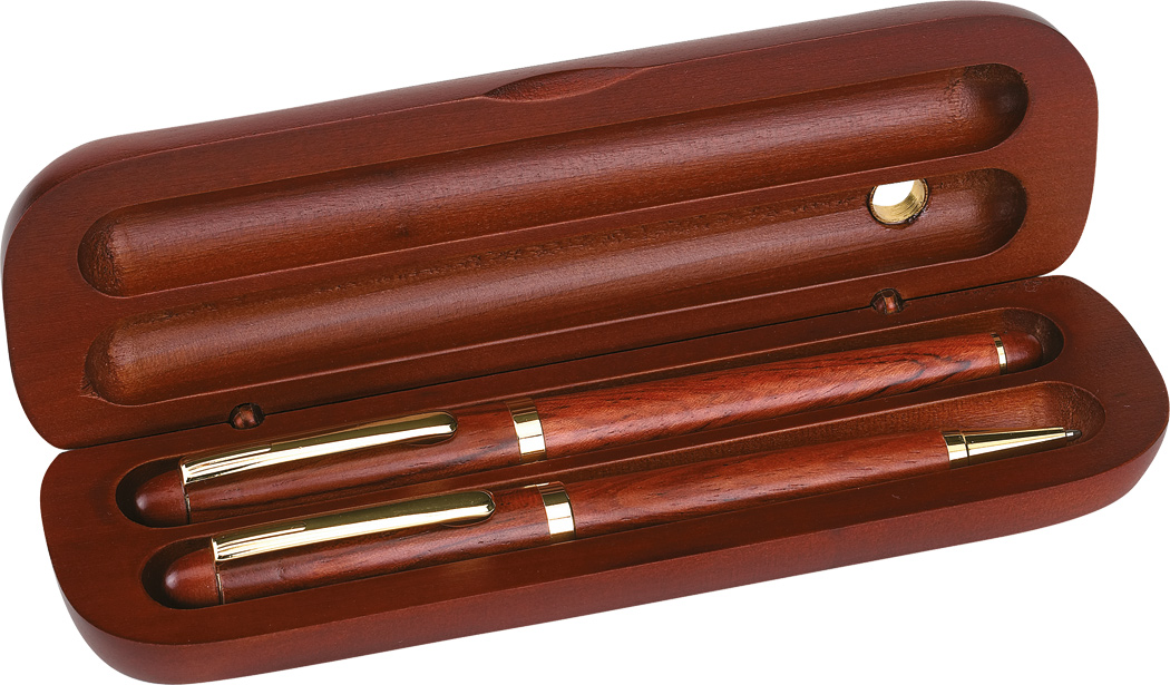 Edles Schreibset POET: bestehend aus Kugelschreiber und Füller mit Holzgehäuse und goldglänzendem Dekor, im Holzetui