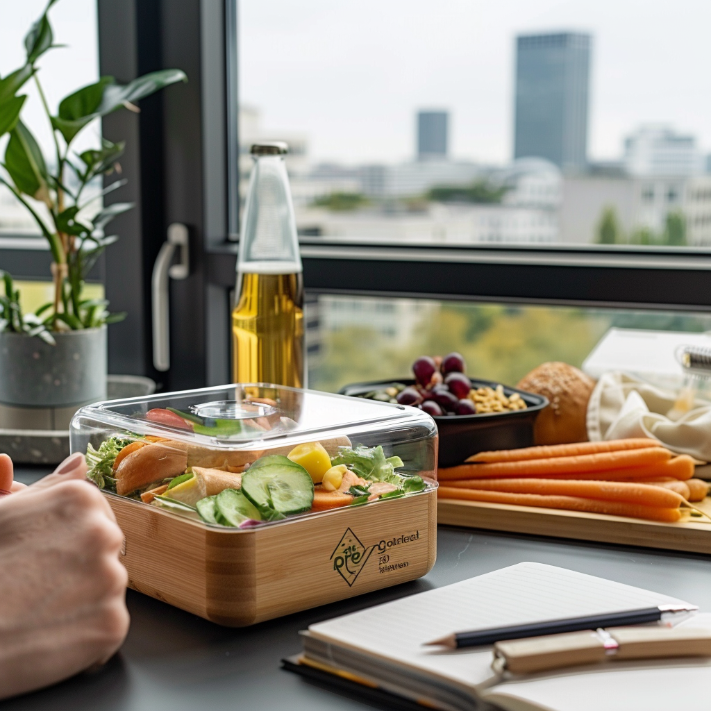 Die Geschichte dieser Lunchbox beginnt bei einem kreativen Marketingteam, das nach einem frischen Weg suchte, um die Marke ihres Unternehmens in den Alltag der Menschen zu integrieren. Sie wählten eine hochwertige, ansprechend gestaltete Lunchbox als ihr Medium. Mit jedem Bissen aus der Box wird die Marke unbewusst mit positiven Assoziationen des Wohlbefindens und der Pause verbunden.