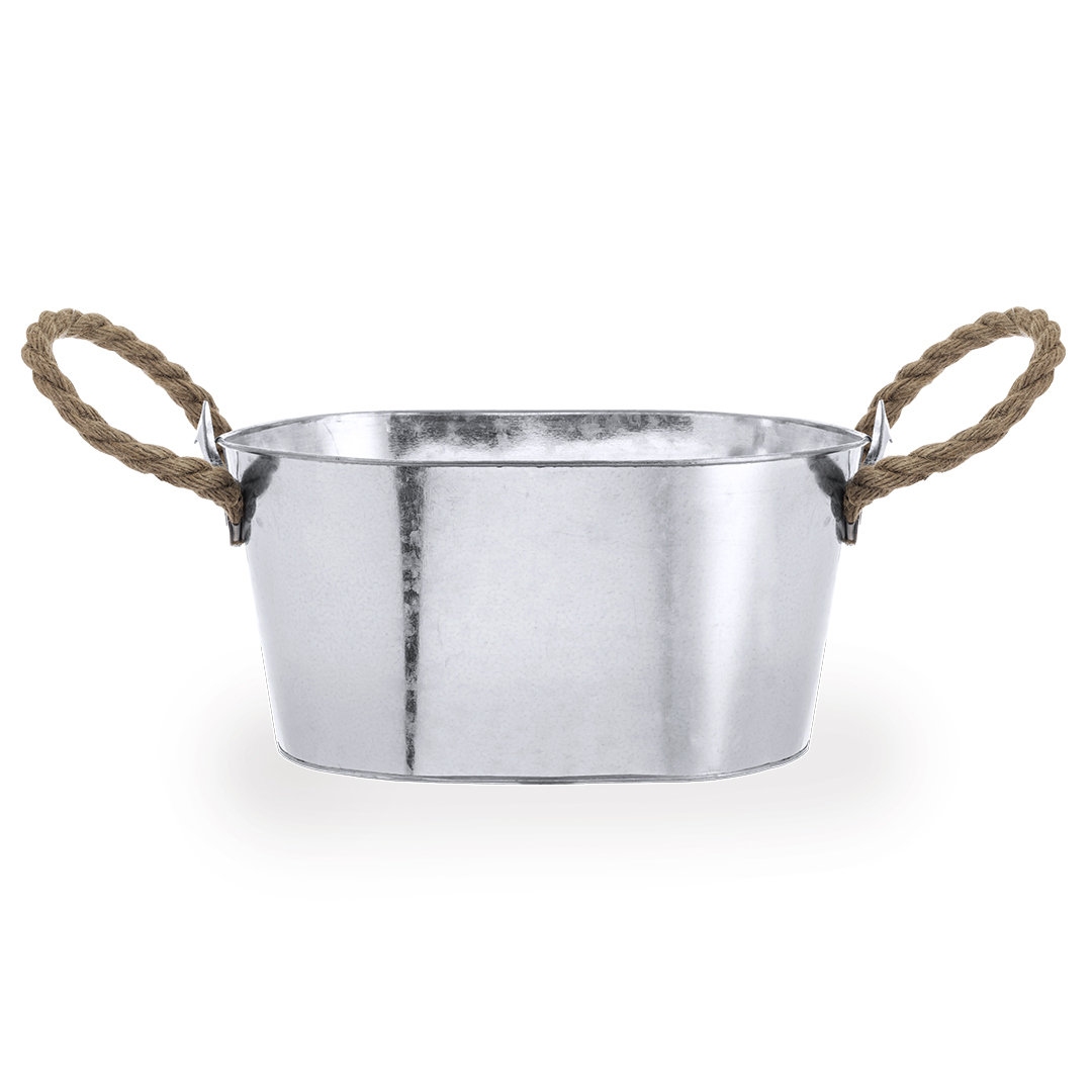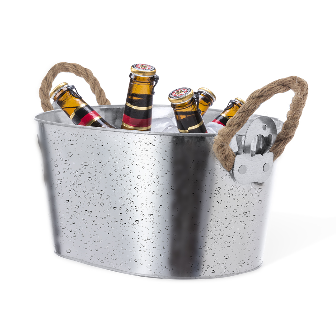 Toller Metalleimer mit 6l Fassungsvermögen zur Aufbewahrung von Kaltgetränken. Perfekte Kombination aus Stil und Funktionalität, mit festen Öffnern an beiden Enden und großem Fassungsvermögen. Robustes Design mit Seilgriffen für einfachen Transport.