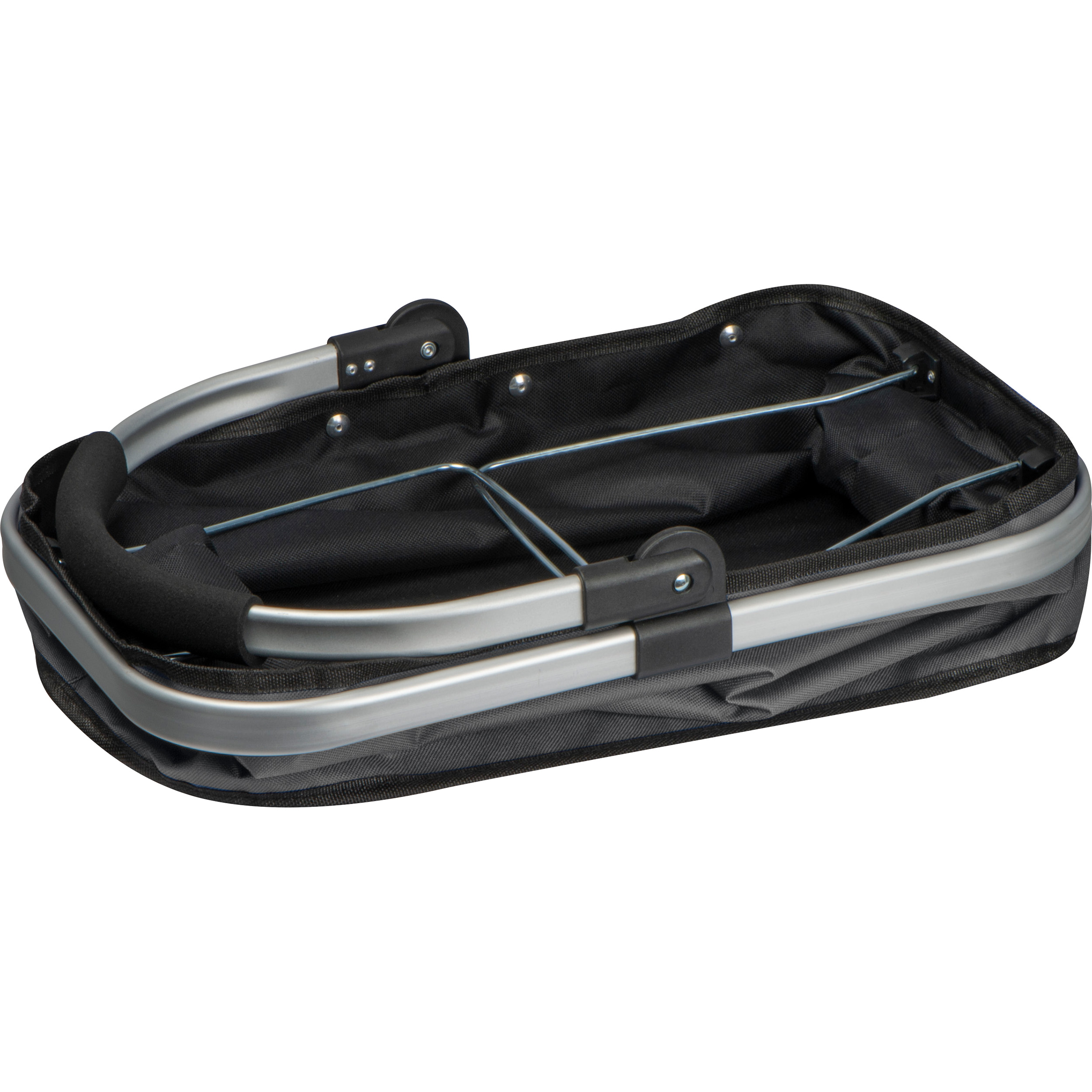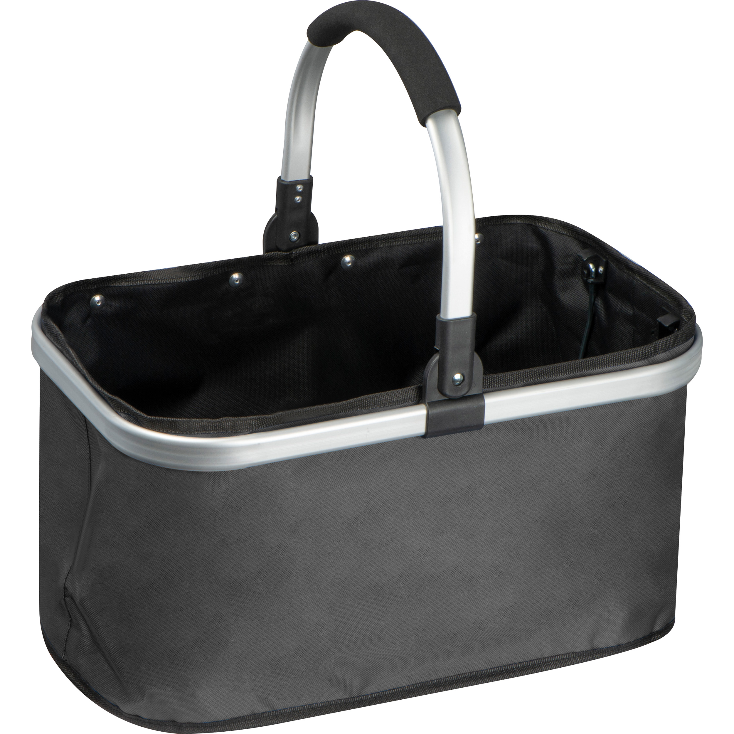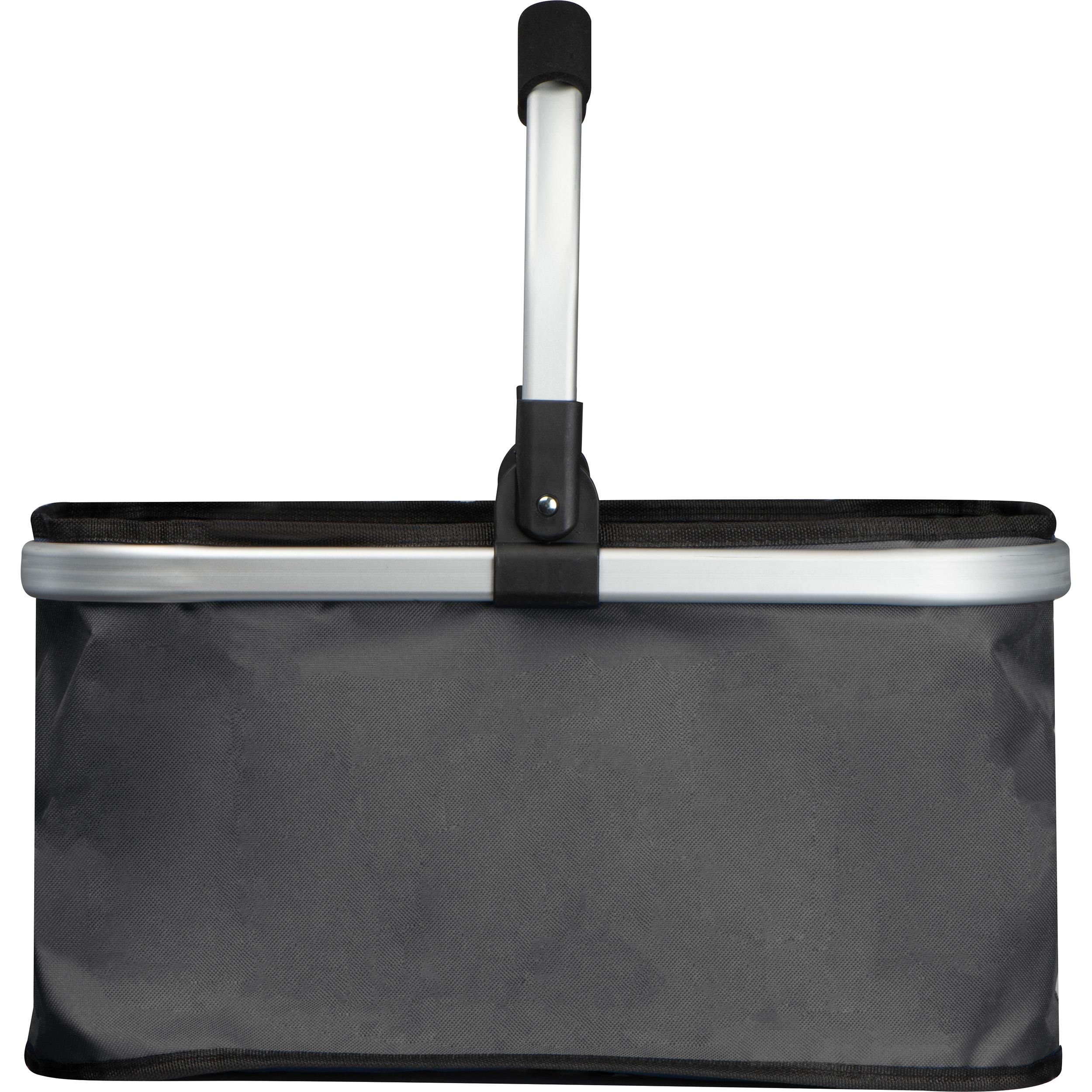 Handlicher Einkaufskorb aus Polyester mit einem einklappbaren Tragehenkel aus Aluminium. Der Korb lässt sich leicht zusammenklappen und hat ein Tragevolumen von 15kg. Der Druck wird mittig auf einer Seite angebracht.
