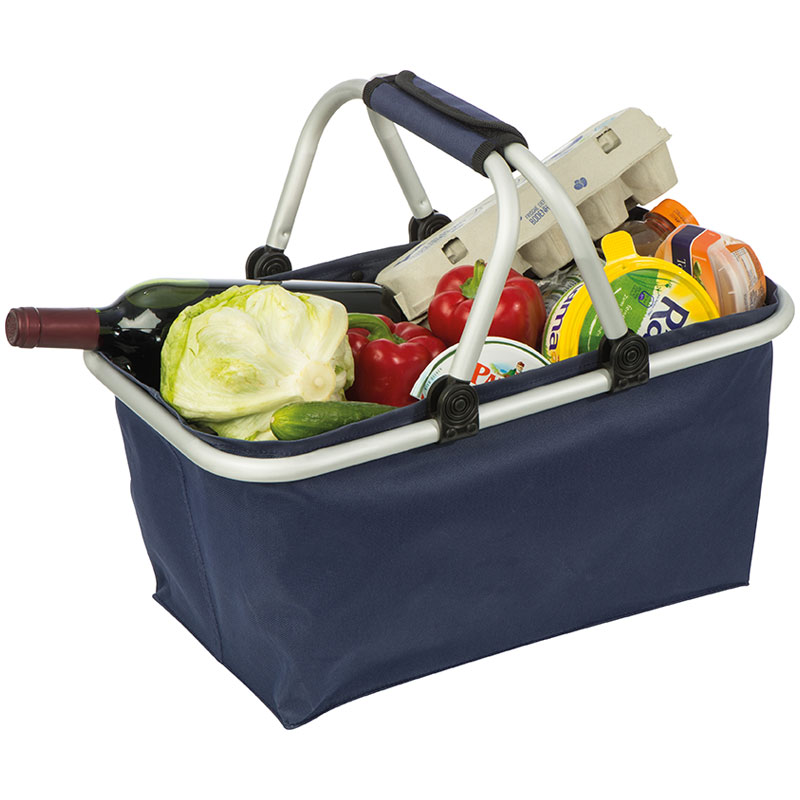 Einkaufskorb aus 600D Polyester mit Aluminiumgestänge in verschiedenen Farben. Ihre Werbung drucken wir auf eine Seite des Korbes.