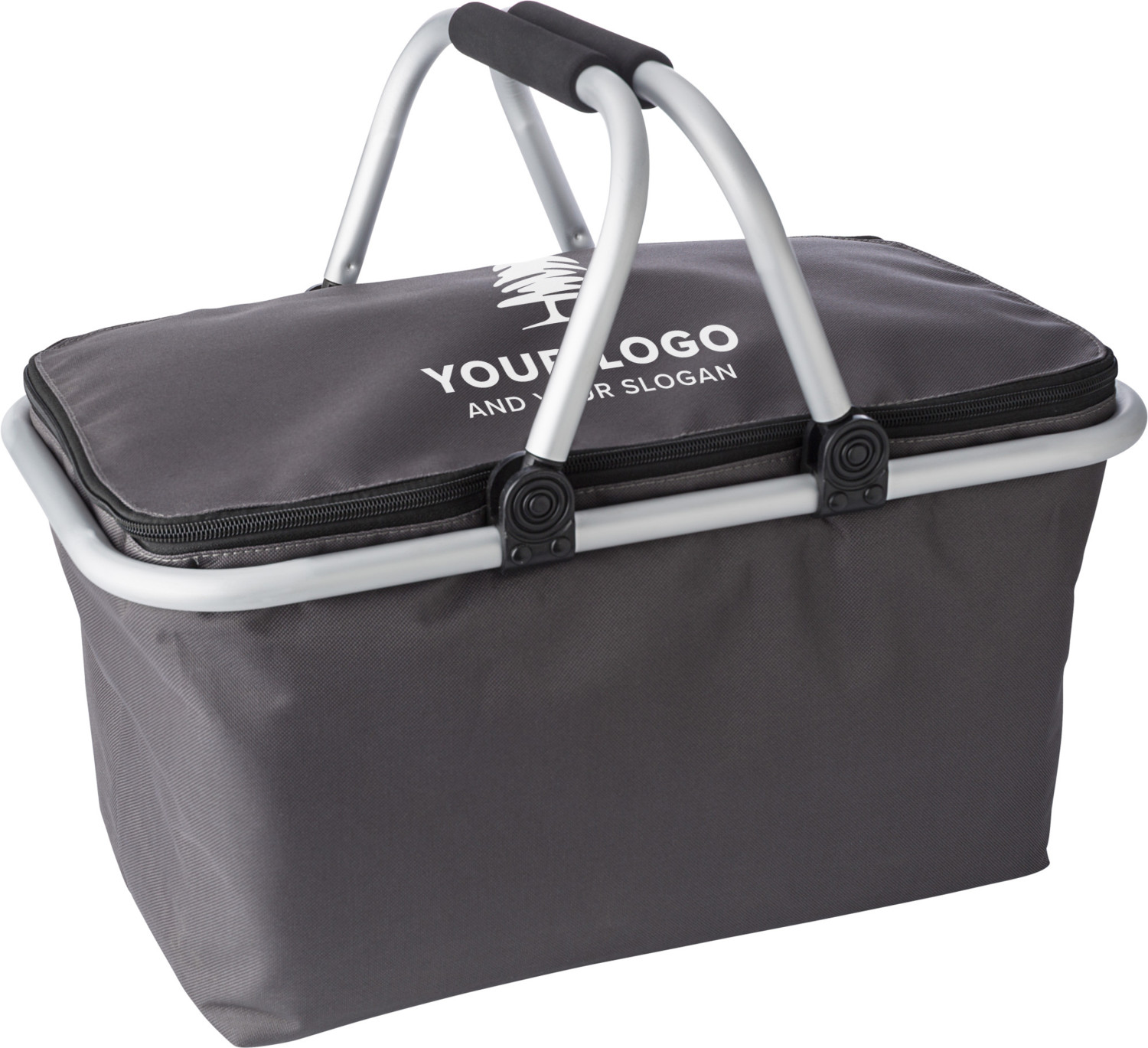 Einkaufskorb aus Polyester (600D), klappbar, mit zwei Aluminium-Tragegriffen, Reißverschluss und Kühlfunktion.
