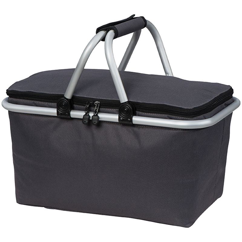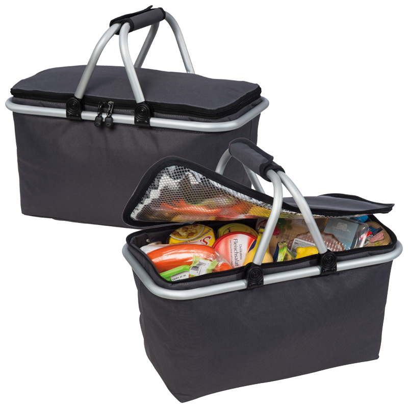 Einkaufskorb aus 600D Polyester mit Aluminiumgestänge und einem großen Kühlfach. Ihre Werbung drucken wir auf eine Seite.