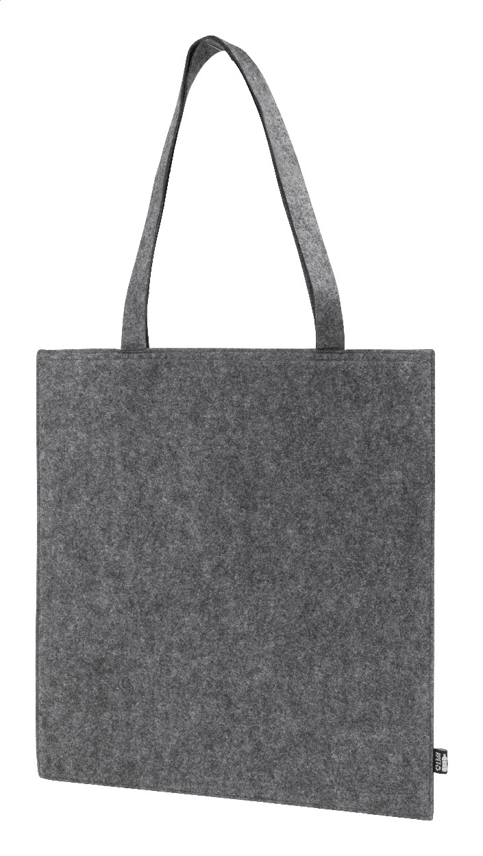 Einkaufstasche aus RPET-Filz mit langen Griffen. Mit RPET-Label.