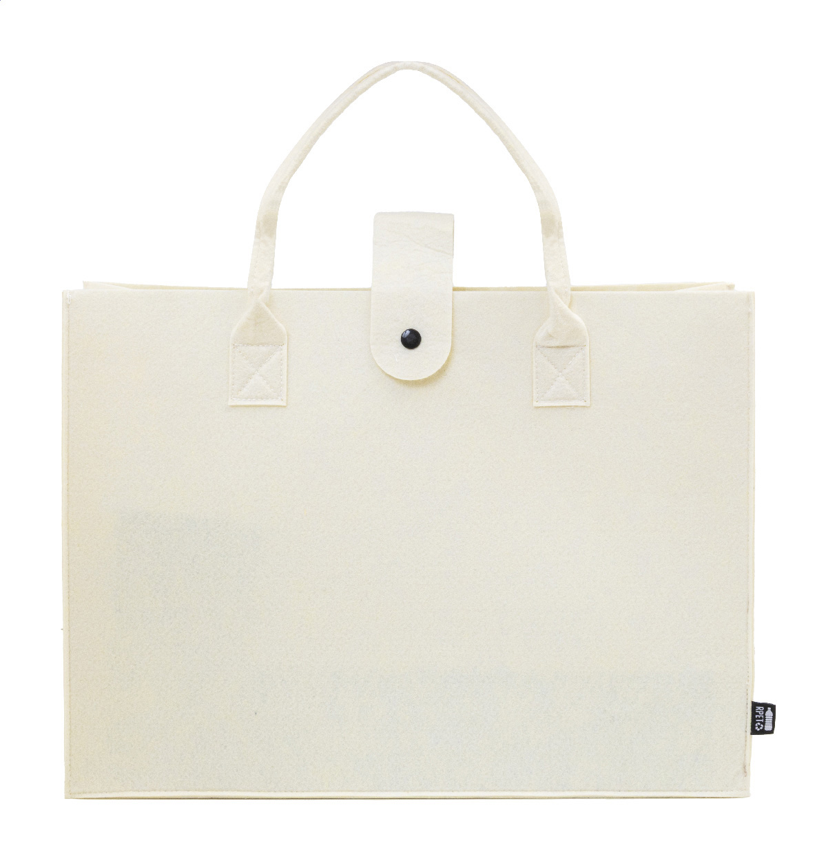 Einkaufstasche aus RPET-Filz mit langen Griffen. Mit RPET-Label.
