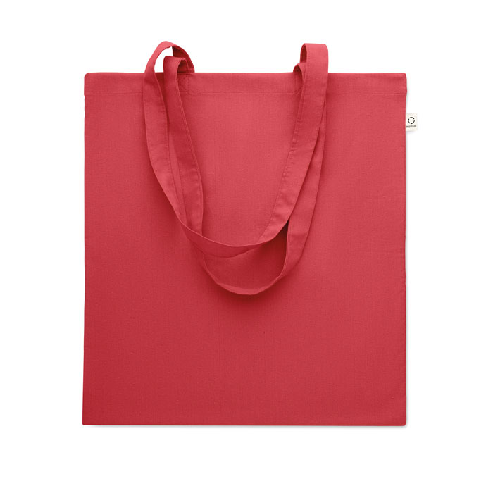 Einkaufstasche aus recycelter Post-Consumer-Baumwolle (70 % recycelte Baumwolle und 30 % RPET) mit langen Tragegriffen. 140 g / m². Artikel kann nach dem Bedrucken schrumpfen.