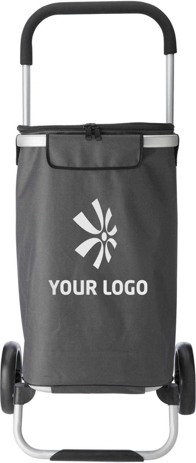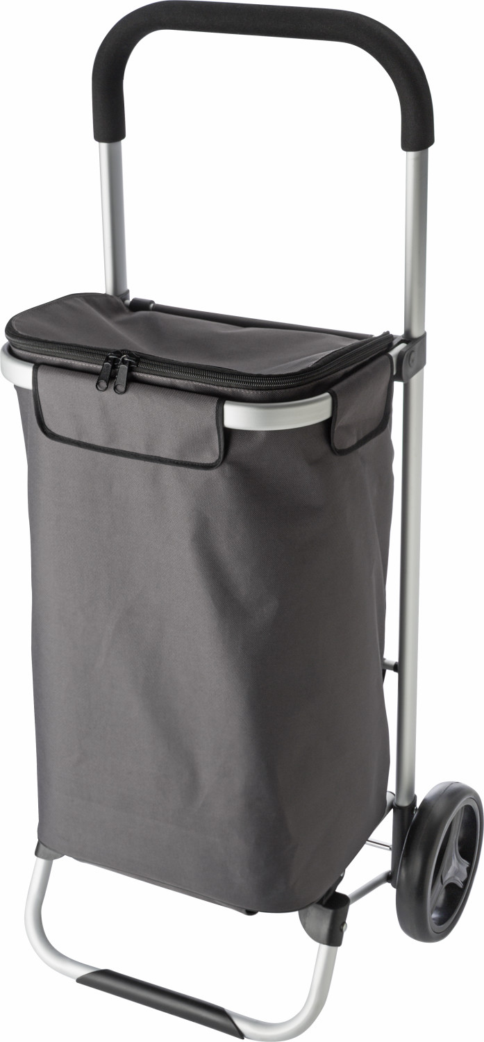 Trolley aus Polyester (600D), mit innenliegendem Kühlfach, Reißverschluss, Aluminiumrahmen und Griff aus EVA-Schaum.