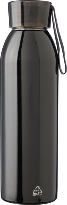 Einwandige Edelstahl-Trinkflasche (650 ml) mit PS-Deckel und Silikonband. Flasche aus rostfreiem Stahl 304, aus recyceltem Edelstahl hergestellt. Einzeln verpackt in einer braunen Pappschachtel.
