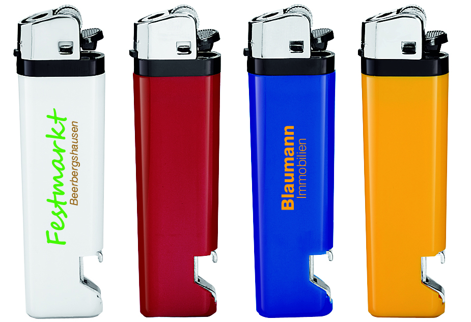 Einweg-Feuerzeug "Theta" mit Flaschenöffner, ISO 9994 und EN 13869