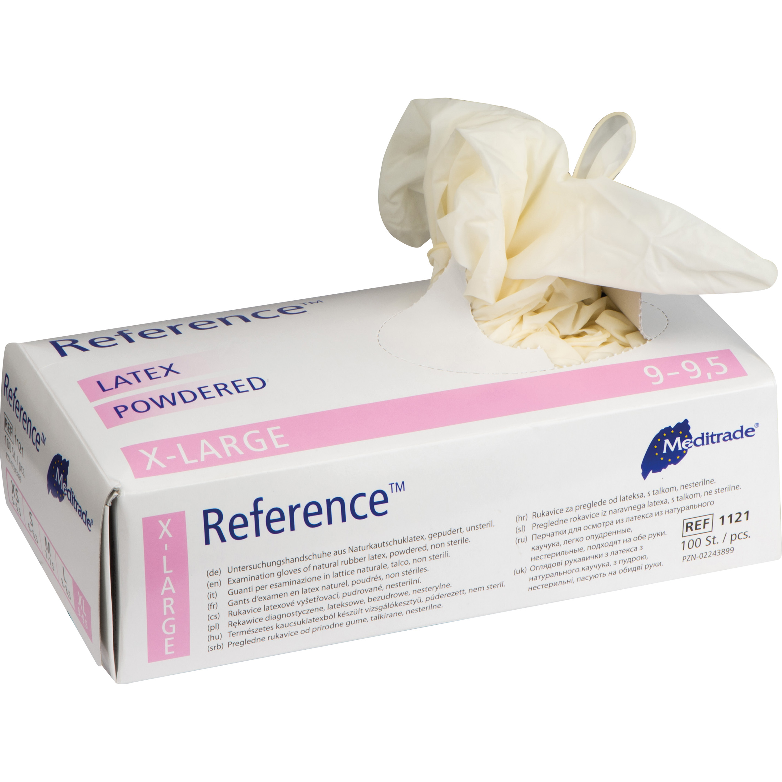 Einweghandschuhe, gepudert in der praktischen 100er Box. Die Handschuhe sind aus Latex gefertigt und werden sortiert in den Konfektionsgrößen S, M, L geliefert. Für die meisten Menschen ist diese Größe zu empfehlen, da das Material sehr dehnbar ist. Ihre Werbung drucken wir auf ein Etikett und bringen es außen auf der Box an.