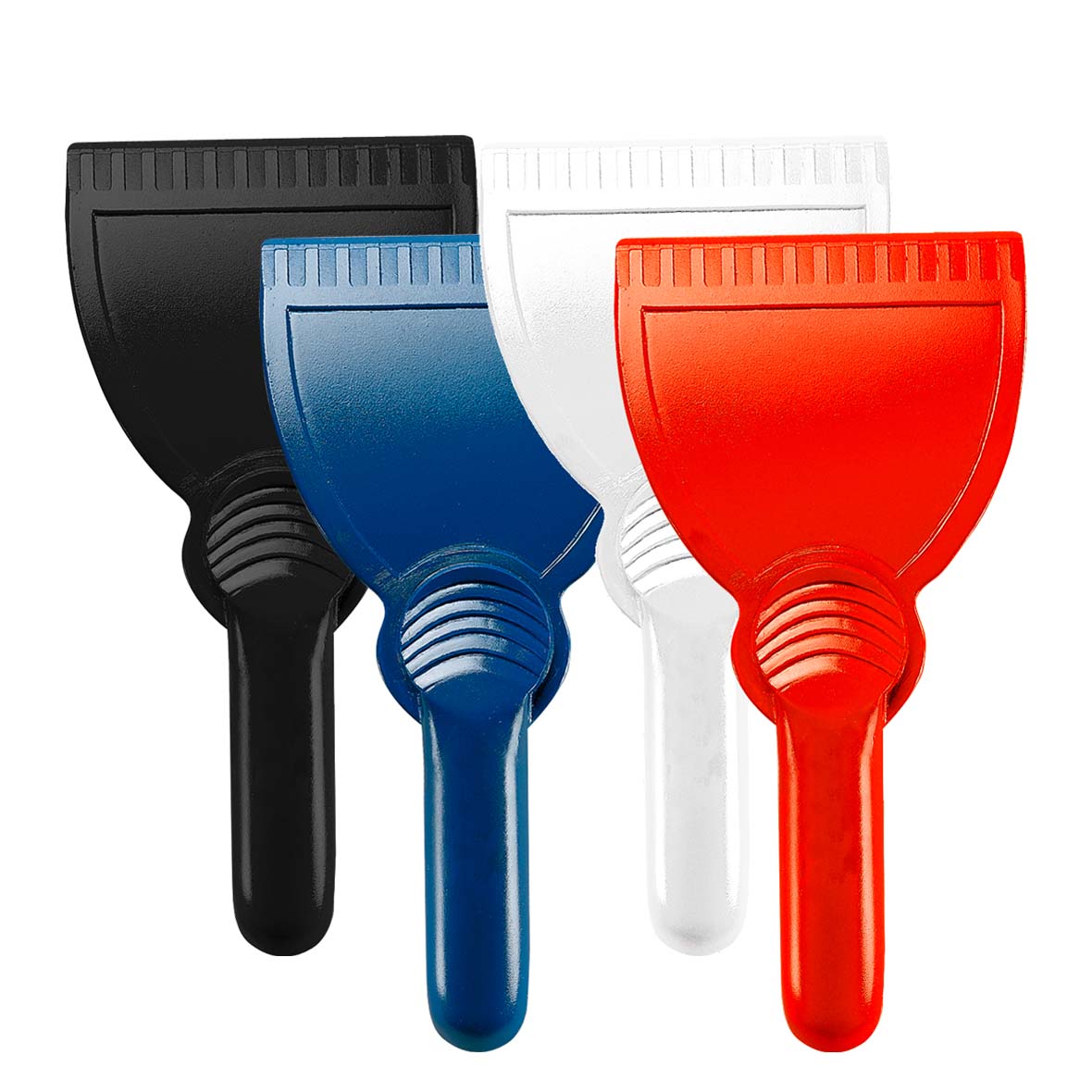 Ergonomisch geformt und stabil. Kunststoffeiskratzer mit glatter Kratzkante, Kratzzacken und handlichem Griff.