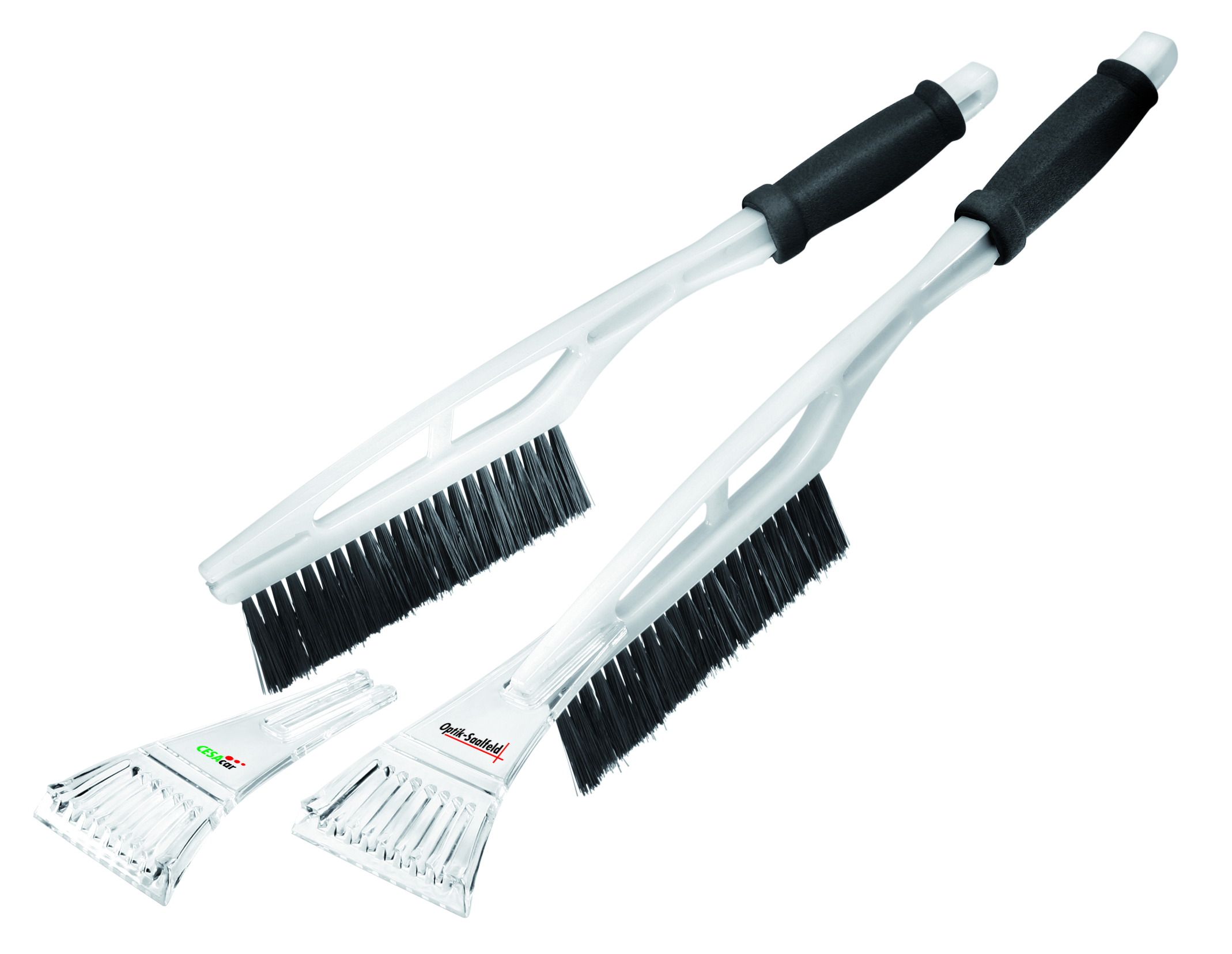 Eiskratzer mit Handbesen mit extra langem, wärmeisolierendem ergonomisch geformten Softgriff. Der Eiskratzer ist abnehmbar und gewährleistet somit optimales Fegen.