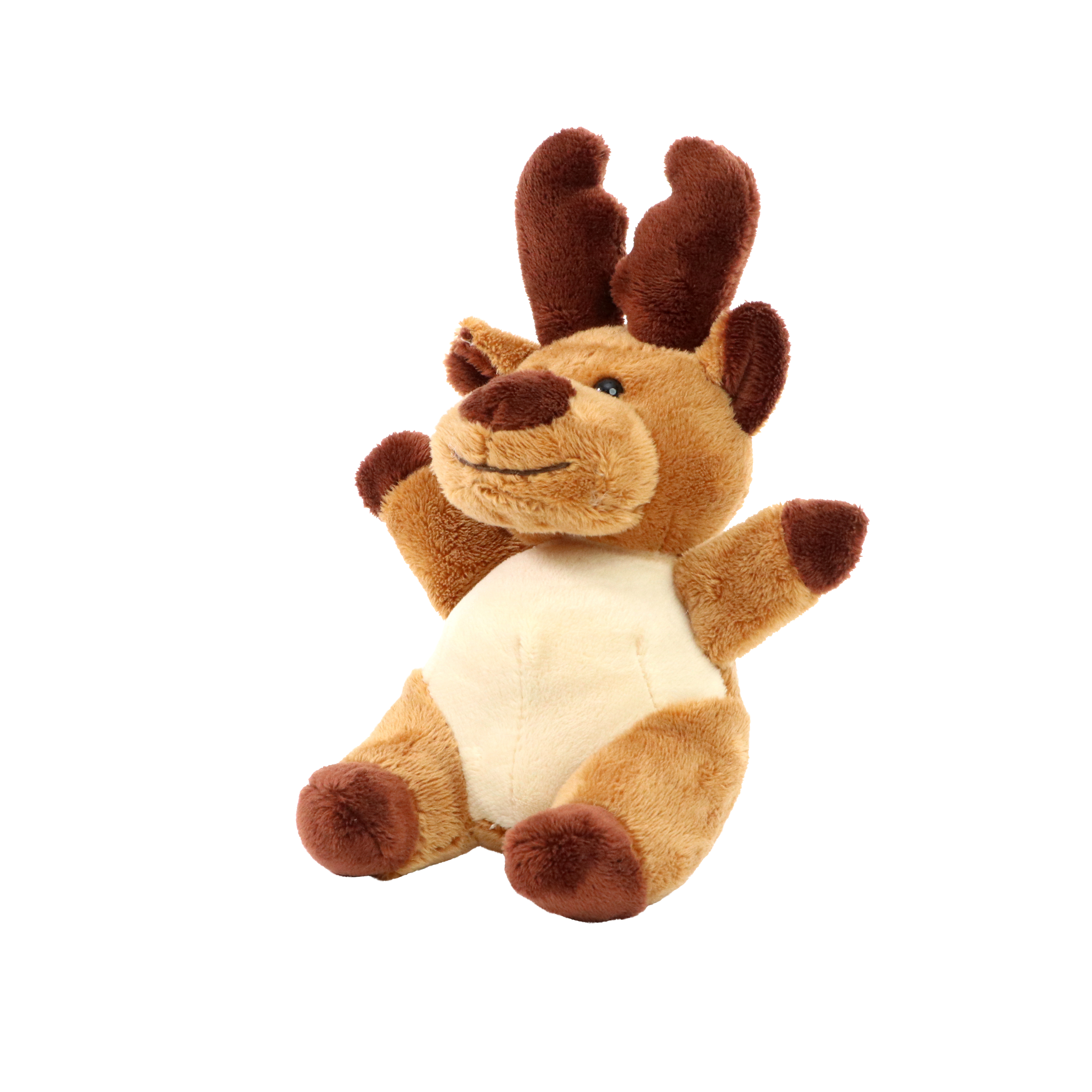 Oke ist ein Kuschel-Elch, der durch ein ziemlich knuddeliges Äußeres besticht: Sein Körper, der aus zweifarbigem Plüsch besteht, wird durch das farblich abgesetzte Schaufelgeweih und die dazu passenden Hufe aufgepeppt. Ein lustiger kleiner Geselle, der sich gerne in den Arm nehmen und beschmusen lässt. Oke ist ein Teil der lustigen Tierparade.