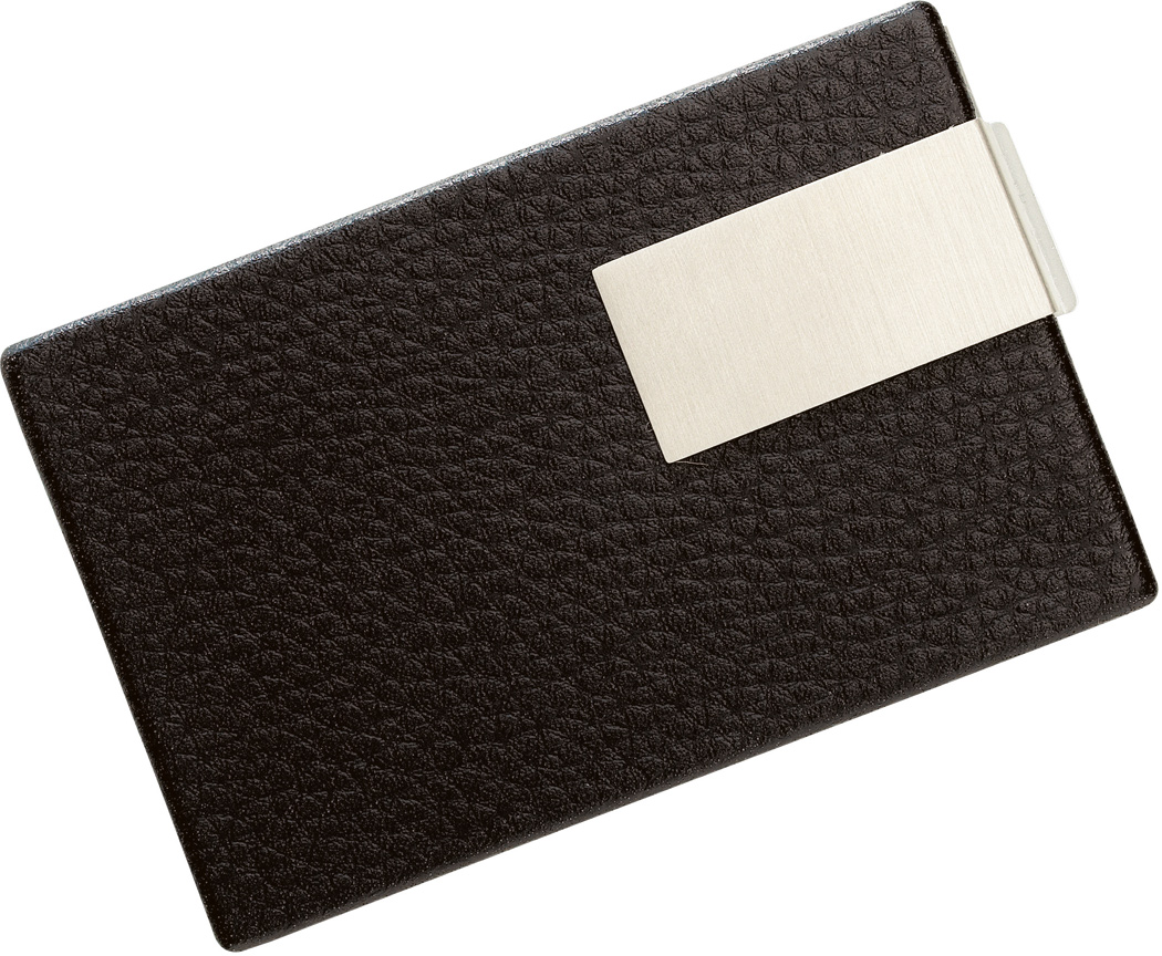 Elegantes Visitenkartenetui COOL CARDS: mit Edelstahl-Plättchen zur Werbeanbringung, in Leder-Optik