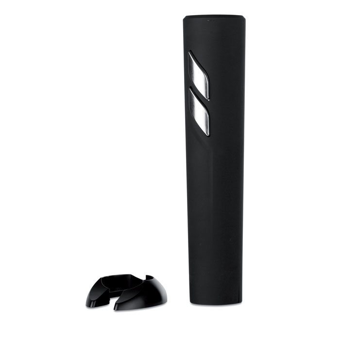 Elektrischer Flaschenöffner. Gehäuse in schwarz-mattem Finish. Inkl. Folienschneider. Exklusive 4 AA Batterien. ABS.