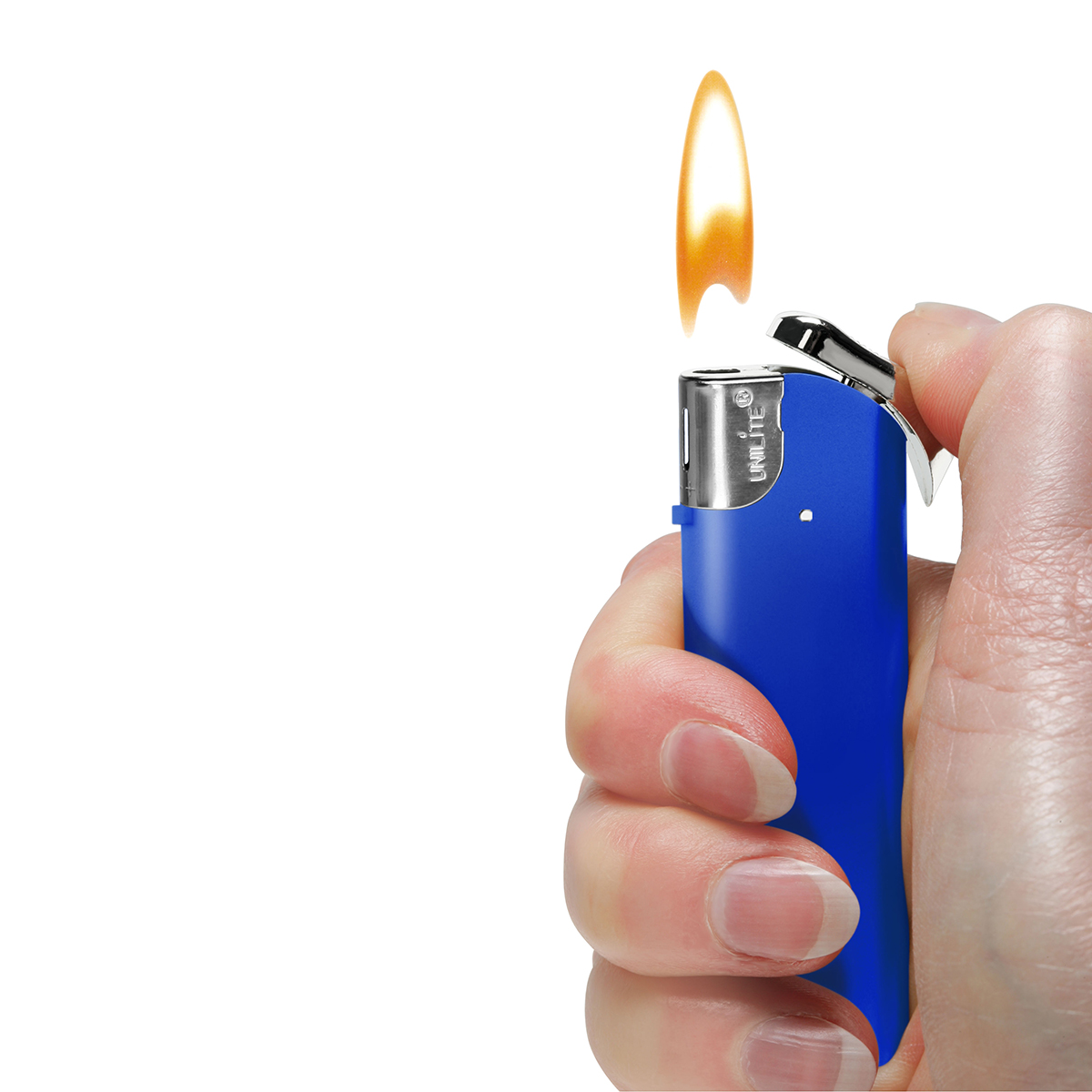 Elektronik-Feuerzeug "Alpha" nachfüllbar, ISO 9994 & EN 13869, kindergesichert. Nur 50er Verpackungseinheiten lieferbar.