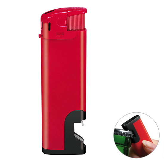 Elektronik-Feuerzeug "Kappa" nachfüllbar, mit Flaschenöffner, ISO 9994 und EN 13869