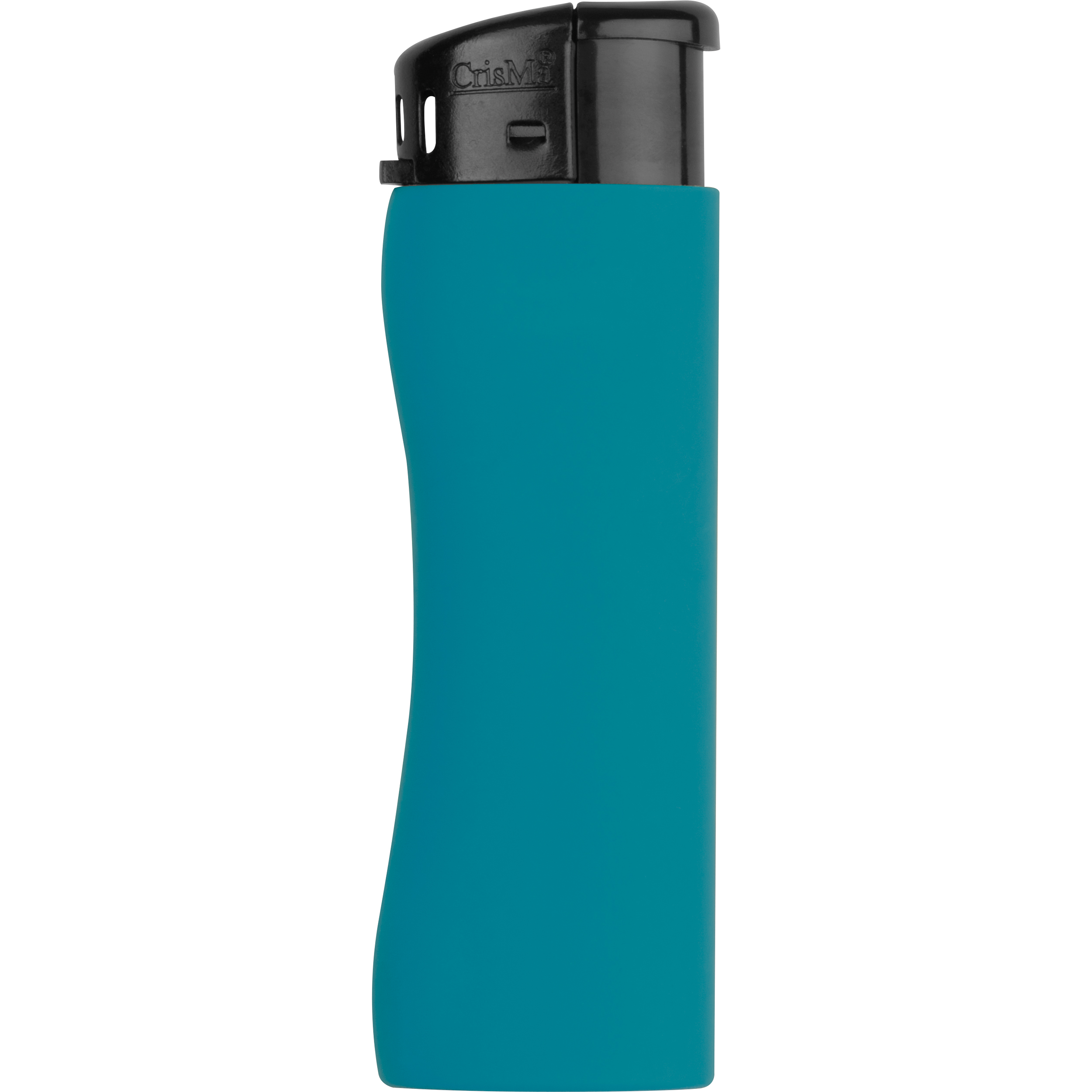Ergonomisches Elektronik Feuerzeug nachfüllbar mit Soft Touch Haptik. Die Flamme lässt sich stufenlos verstellen. Der Werbeaufdruck wird im Digitaldruck (mehrfarbig) für Rechtshänder lesbar angebracht.