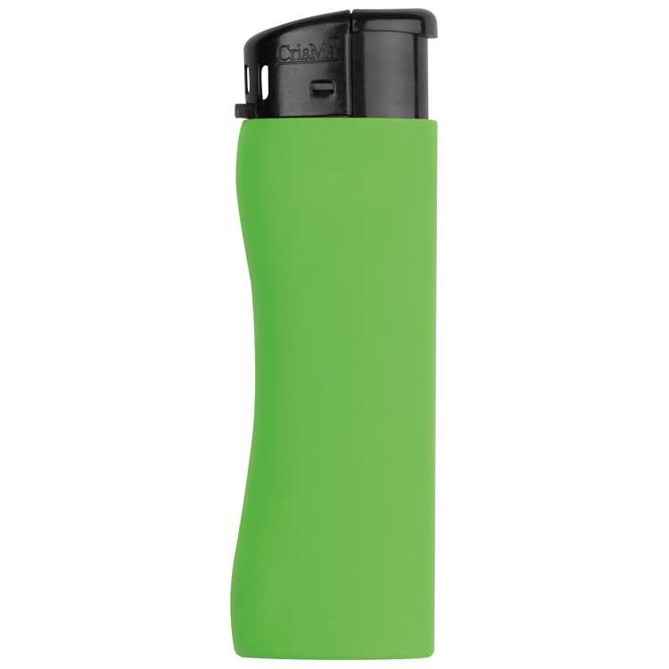 Ergonomisches Elektronik Feuerzeug nachfüllbar mit Soft Touch Haptik. Die Flamme lässt sich stufenlos verstellen. Der Werbeaufdruck wird im Digitaldruck (mehrfarbig) für Rechtshänder lesbar angebracht.